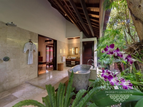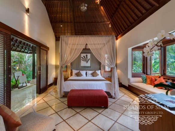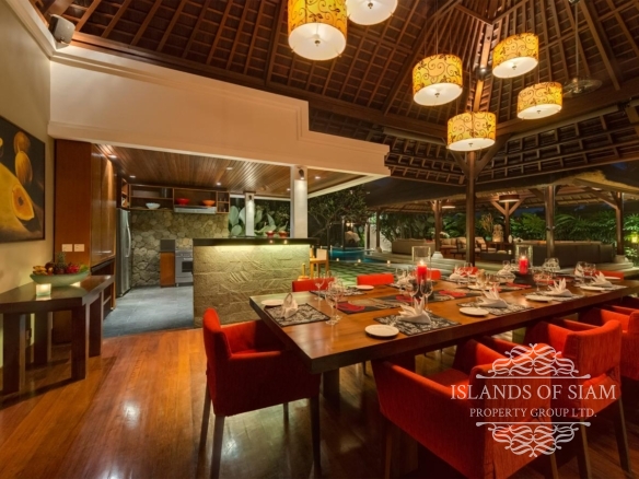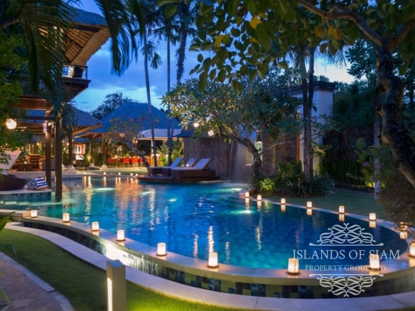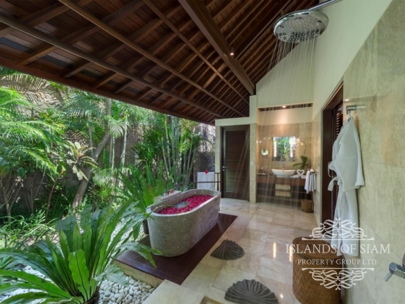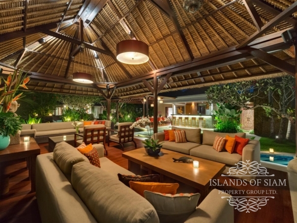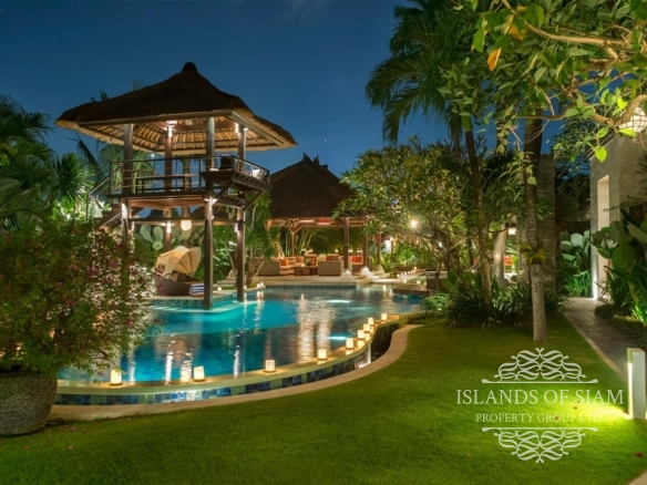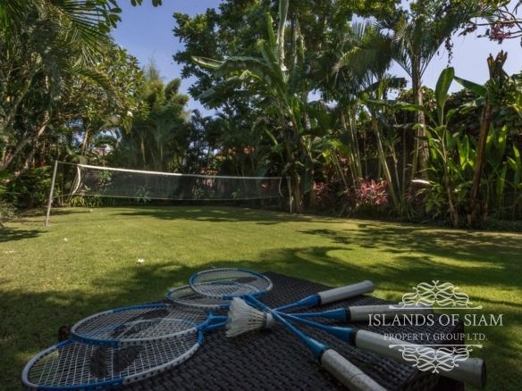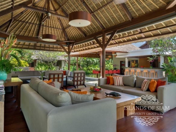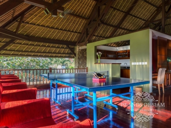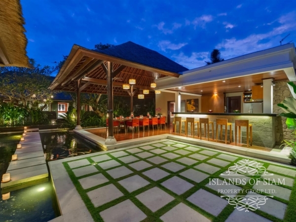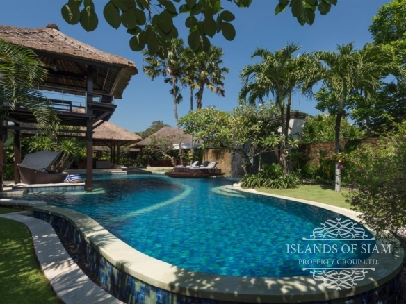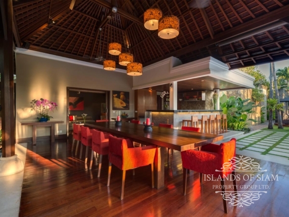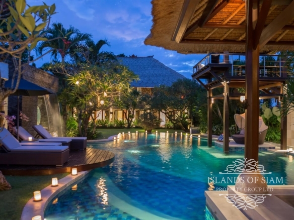 A spectacular free-form swimming pool sits at the heart of Villa Asta, a stunning five-bedroom villa perfect for active families. Kids of all ages get their own wing with three bedrooms and, overlooking the badminton court, a massive games room offering pool, table tennis, TV and computer. Parents appreciate their two-bedroom master wing with plunge pool at the other end of the estate, as well as the open-sided living pavilion and dining pavilion with media room, and two-storey balé. And all enjoy Finns Recreation Club membership and Batubelig Beach within a short walk; Seminyak is a short taxi ride away.