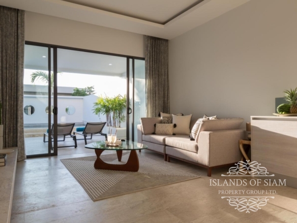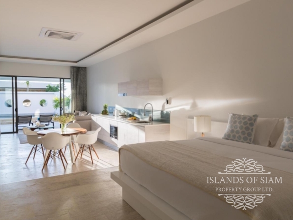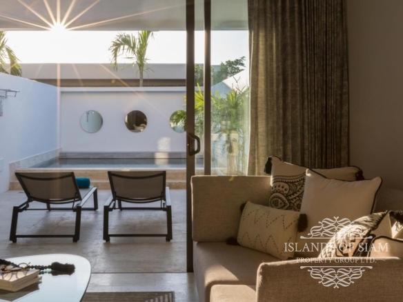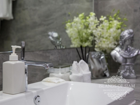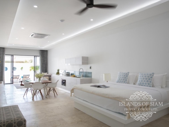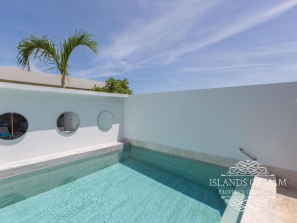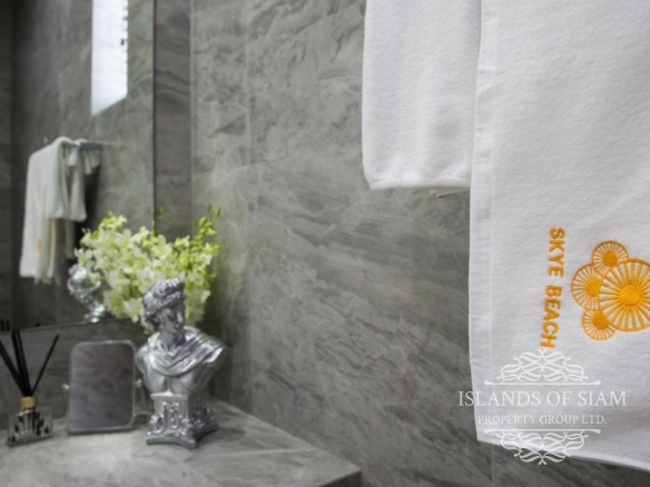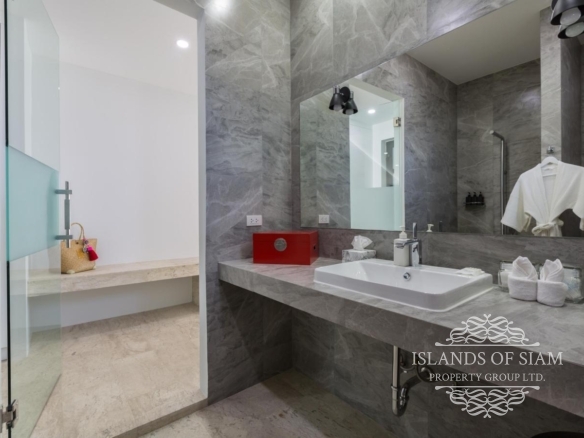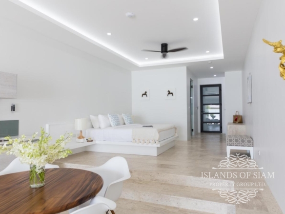 - Wall to ceiling glass doors open up to a private deck with sun loungers and sofa beds and a private 16 sqm pool with a spectacular 180 degree panoramic view from Big Buddha to the island of Koh Som and Koh Phangan in the distance.