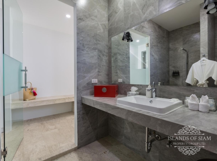 - Wall to ceiling glass doors open up to a private deck with sun loungers and sofa beds and a private 16 sqm pool with a spectacular 180 degree panoramic view from Big Buddha to the island of Koh Som and Koh Phangan in the distance.