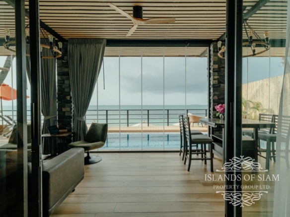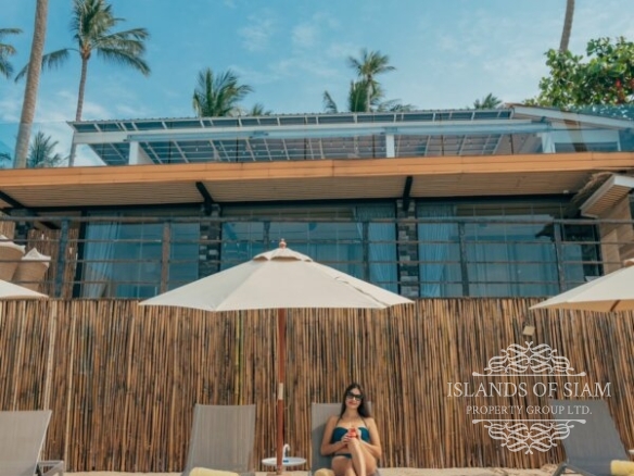 This brand new beachfront villa is located on a paradise beach Ban Tai with white sand and hanging palm trees and can be used both as a luxury holiday home and a venue for any event.