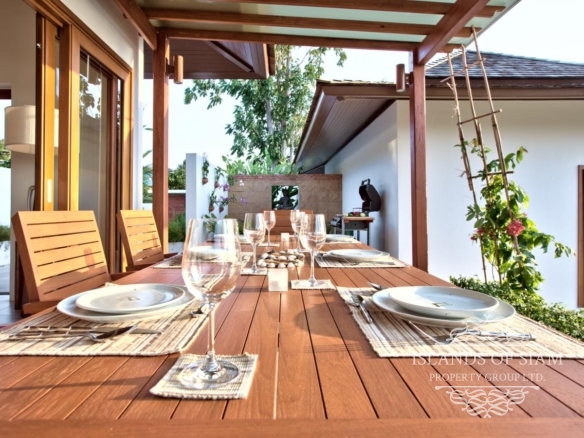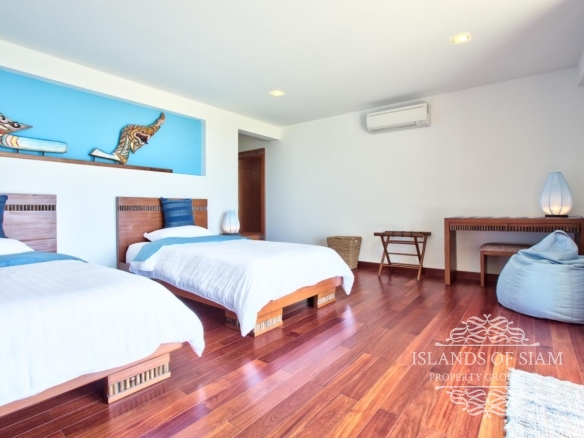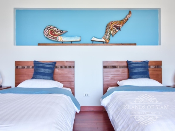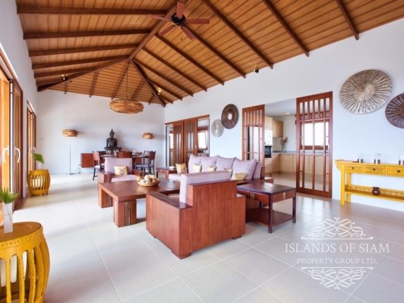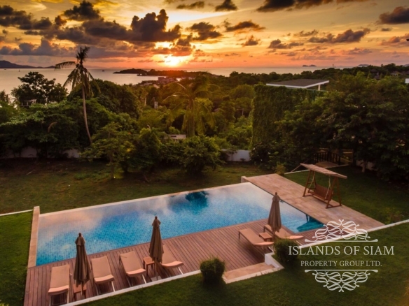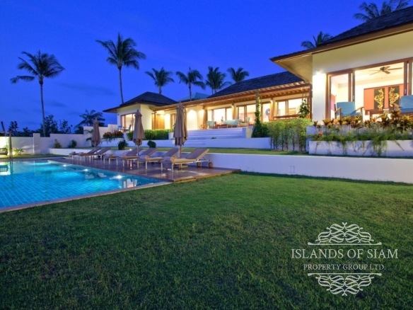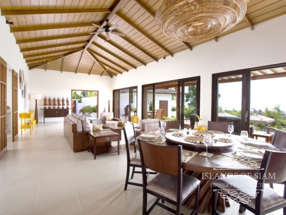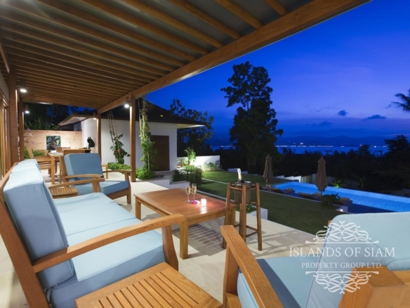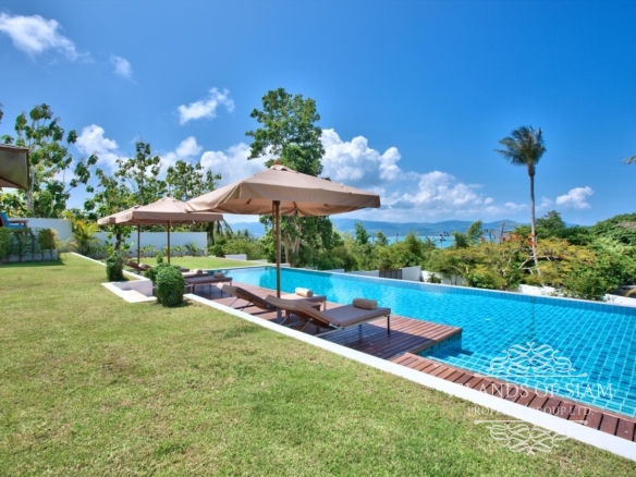 With high quality teak outdoor furniture, open terraces, a huge 15 meter swimming pool surrounded by a large garden , Baan Apsara offers you an Exclusive, Relaxing and Magical holiday with fantastic views over the Gulf of Thailand and the neighbouring island of Koh Phangan.