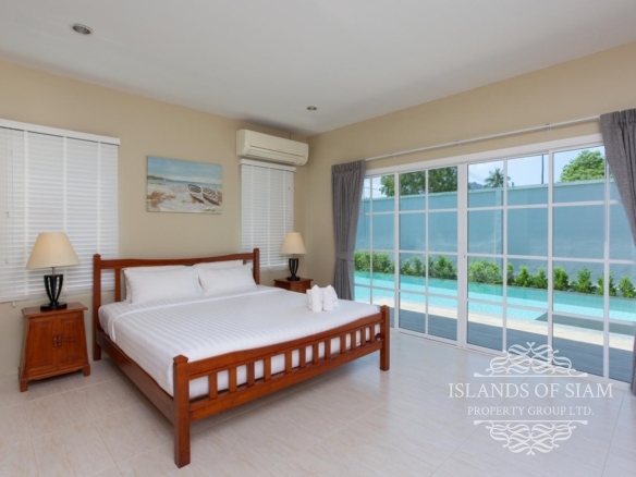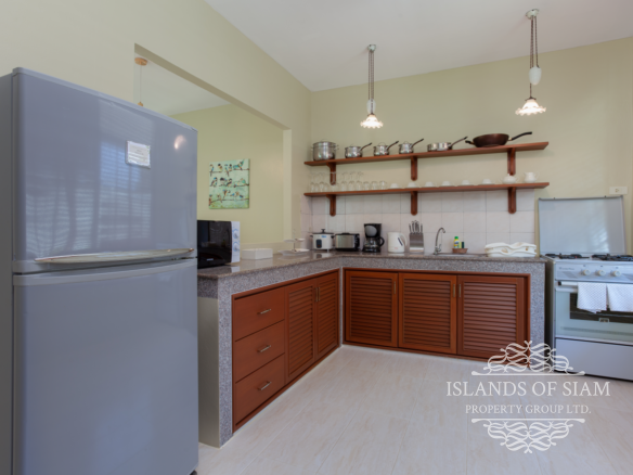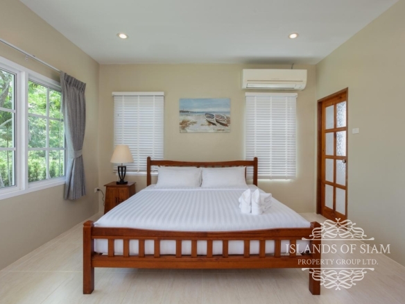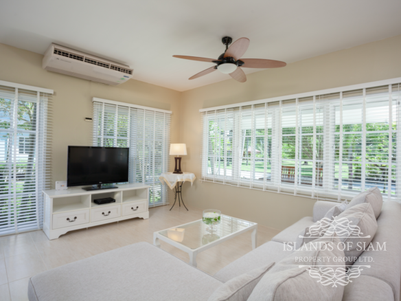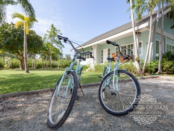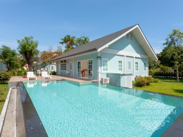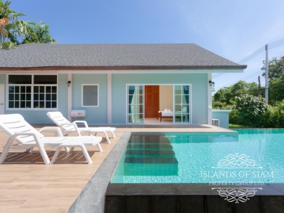 The modern two bedroom pool villa is surrounded by beautiful gardens and is stylishly decorated throughout and features a private garden and parking area. The villa is spacious and fully furnished and has plenty of space by the pool and sun loungers to relax outdoors amongst nature.