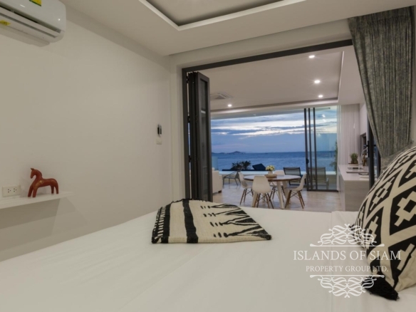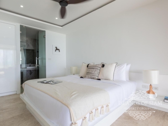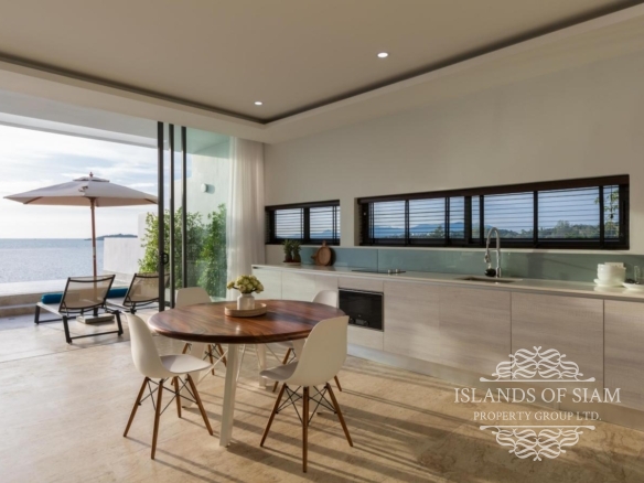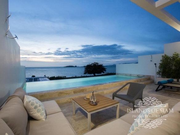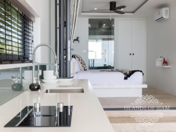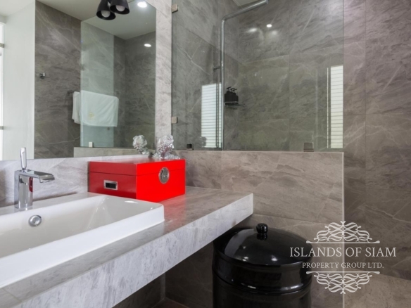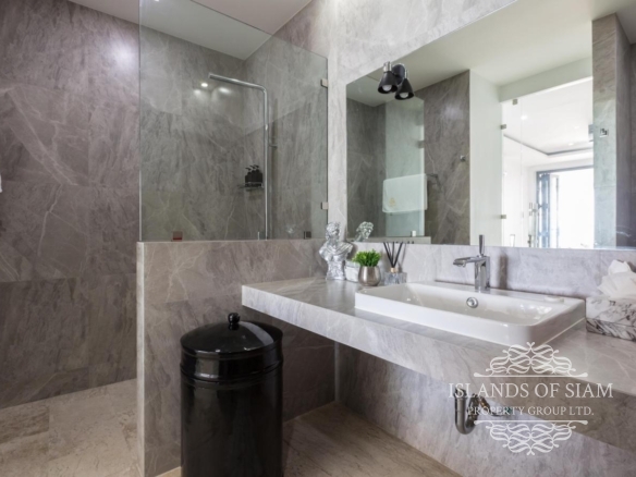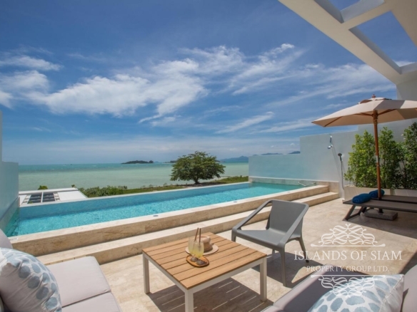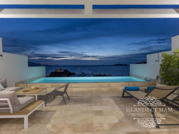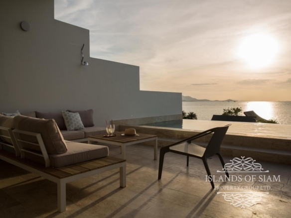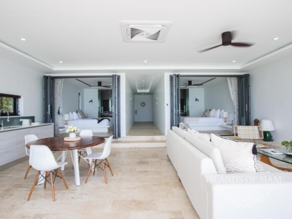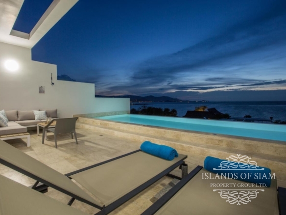 A luxury 180 sqm penthouse suite with a separate Cinema, two generous ensuite bedrooms, a separate lounge and dining area with fitted kitchen – complemented by a large deck with loungers, sofa beds and a 25 sqm infinity pool with 180 degree panoramic views across the glittering Bay of Thailand – provides ample space for four people.