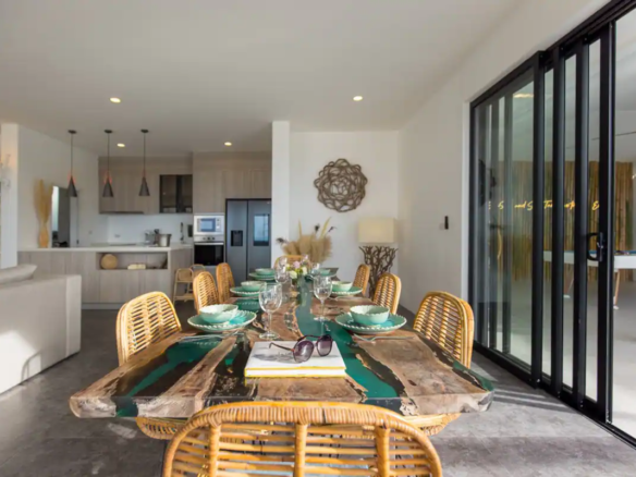 200 m2 terraces, infinity pool, billiards, hanging chair, connected TV and fridge, wine cellar, free Netflix, airplay sound system. Comfortable bedrooms with en-suite bathrooms.