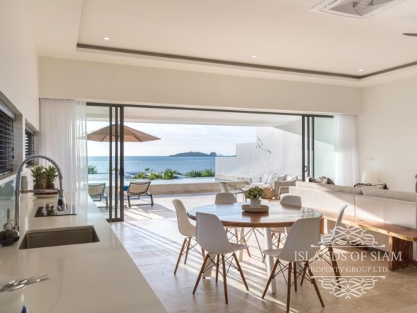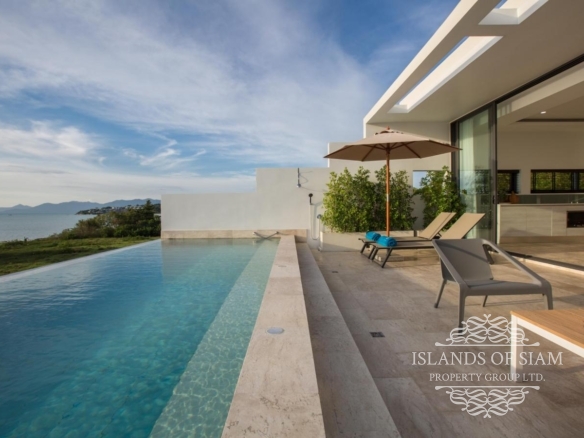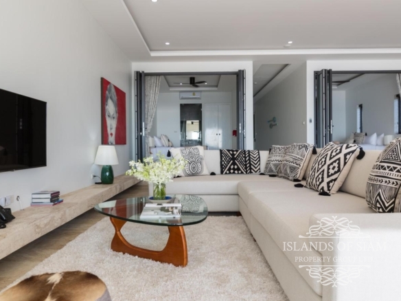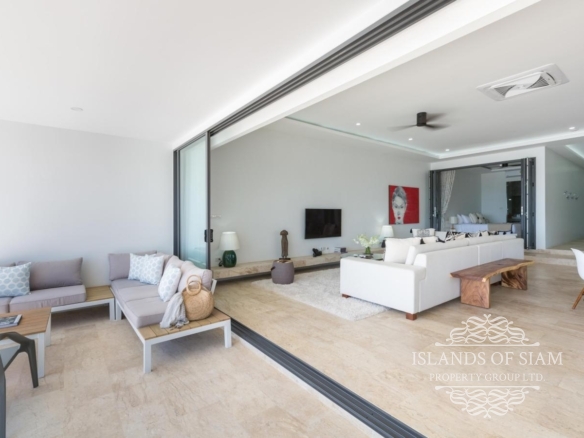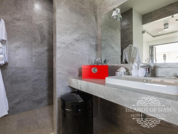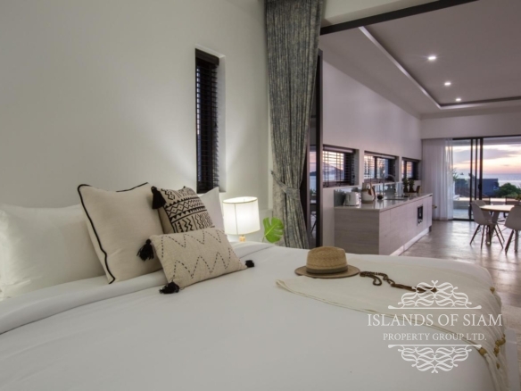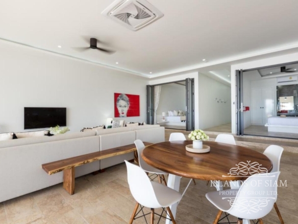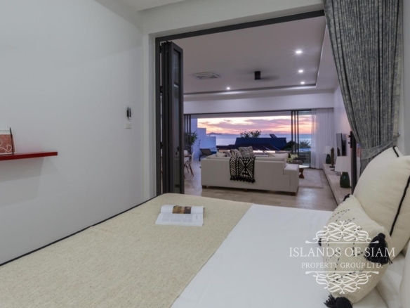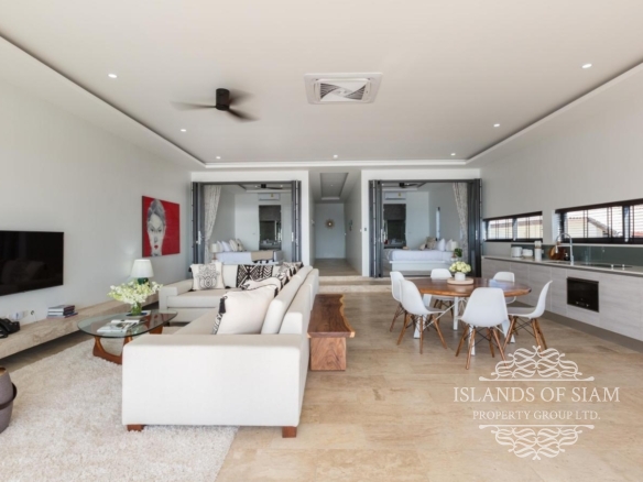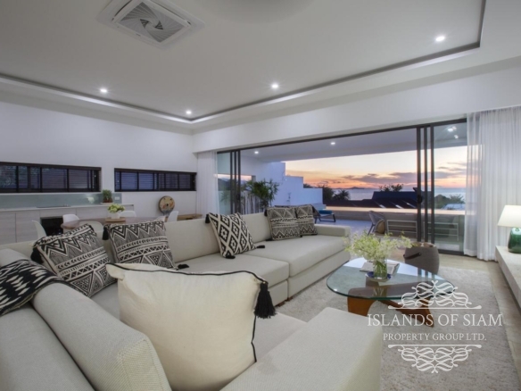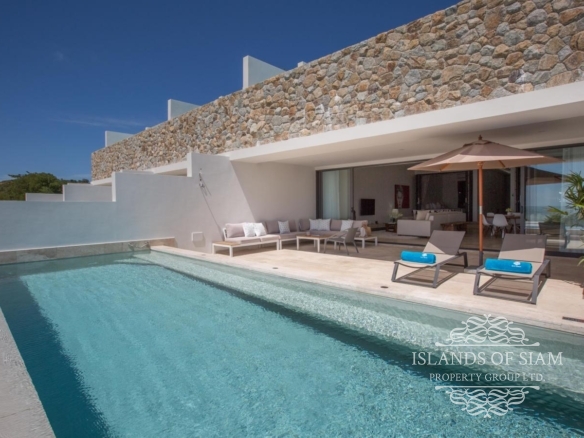 A luxury 200 sqm suite with a separate Cinema , three generous ensuite bedrooms, a separate lounge and dining area with fitted kitchen – complemented by a large deck with loungers, sofa beds and a 25 sqm infinity pool with 180 degree panoramic views across the glittering Bay of Thailand – provides ample space for six people.
