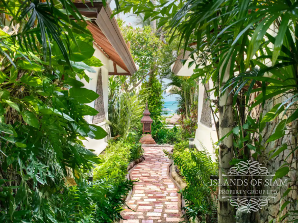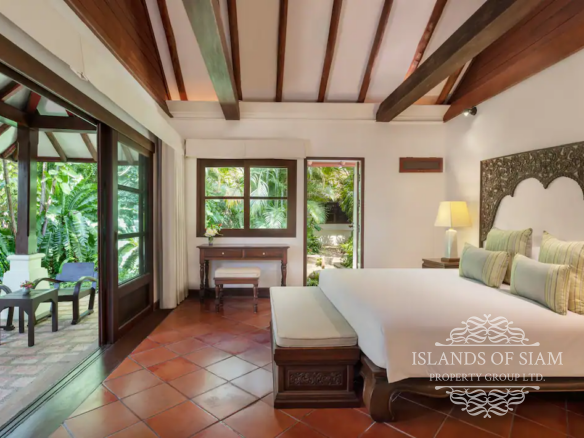 The pavilions share a 1,600 square metre walled garden with Thai artefacts and a large double hammock in a picture postcard setting just perfect! Surrounded by lush vegetation and ancient coconuts and tropical trees, the setting preserves everyone’s privacy.