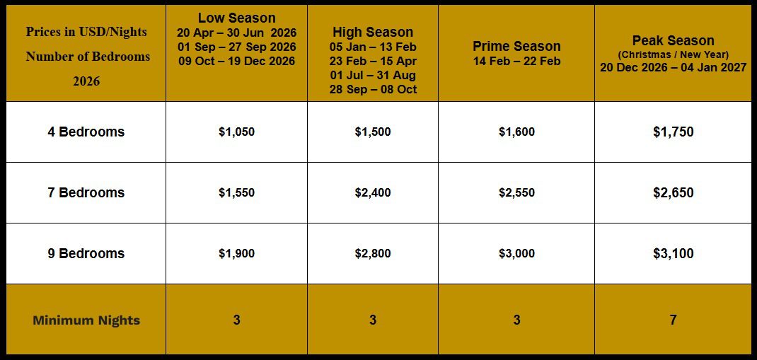 This villa is designed to cater to your every need, boasting a fully equipped gym, a state-of-the-art cinema room, a vibrant games room, and multiple jacuzzis.