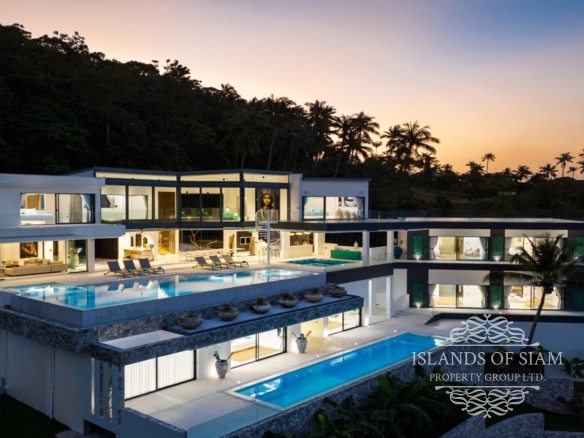 Nestled in the serene locale of Bang Po, Koh Samui, This villa epitomizes luxury with its 9 lavish bedrooms, each worthy of being called a master suite. This stunning villa features two expansive swimming pools, each offering breathtaking panoramic sea views, perfect for a tranquil retreat.
