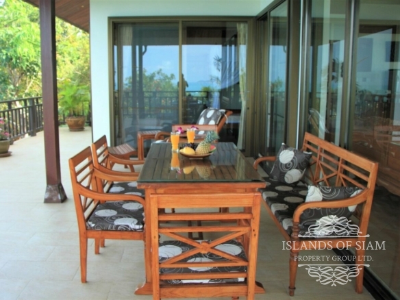 On the large, surrounding terrace you will find a dining table set on the west side as well as on the east side, and a comfortable seating area invites you to relax. Running the full length of the West Terrace is the beautiful lily pad with koi fish. This is the right place to admire the spectacular sunsets over Angthong National Park every evening. From every seat on the terrace you have a different, wonderful sea view.