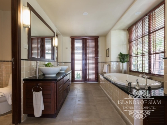 The master suite offers a lovely seaview and a large en suite bathroom with a bathtub, ideal for long soaks after a day in the pool. Two other bedrooms, both with their own bathrooms are spacious with comfortable beds and beautiful parquet wooden floors. Aqua Vista 29 is perfect for families who want peace and quiet in a private villa, mere minutes away from the hustle and bustle of main street in Chaweng beach.