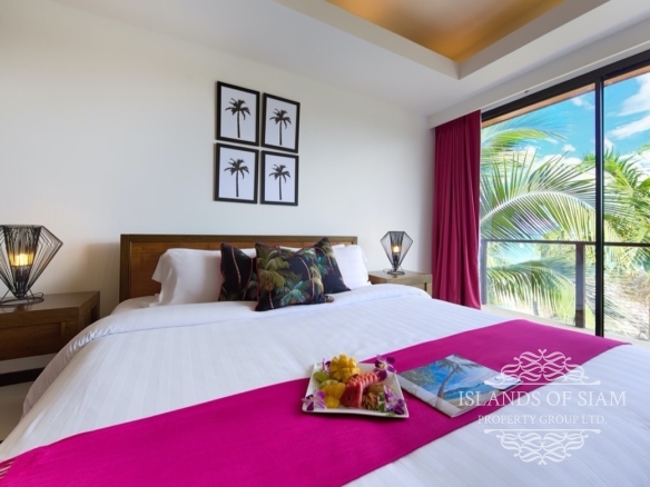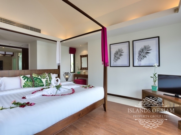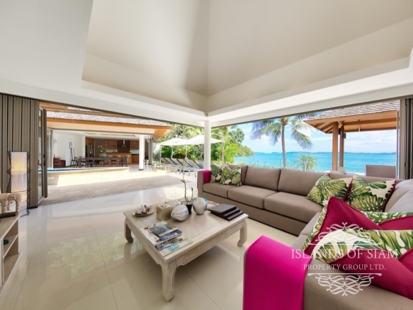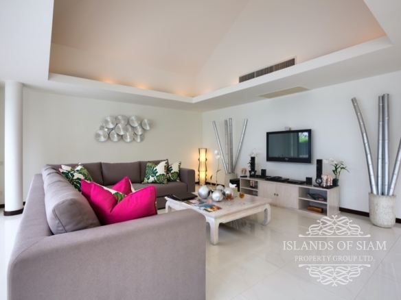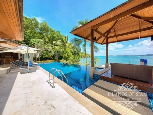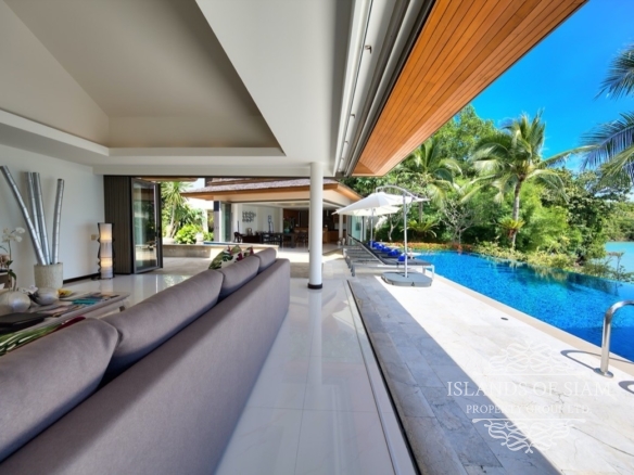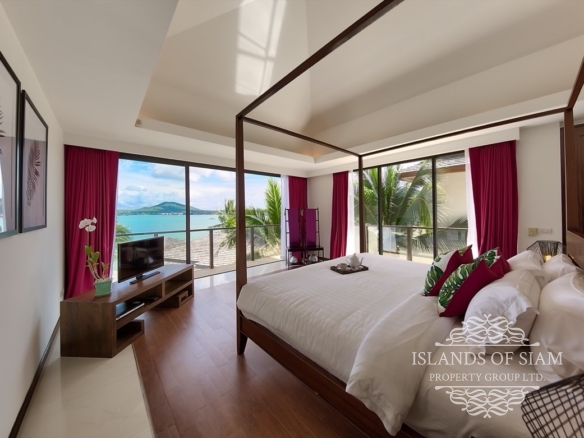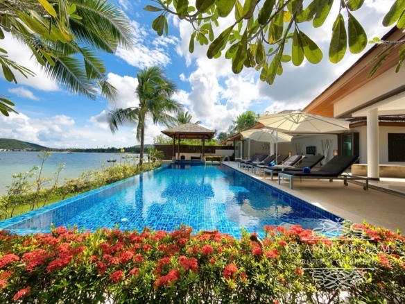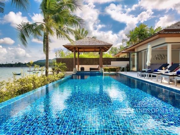 Baan Benjamart is a contemporary 4-bedroom villa situated right on Bophut beach, boasting a tropical elegance that flows right through its comfortable living spaces, making the most of its stunning and private location.