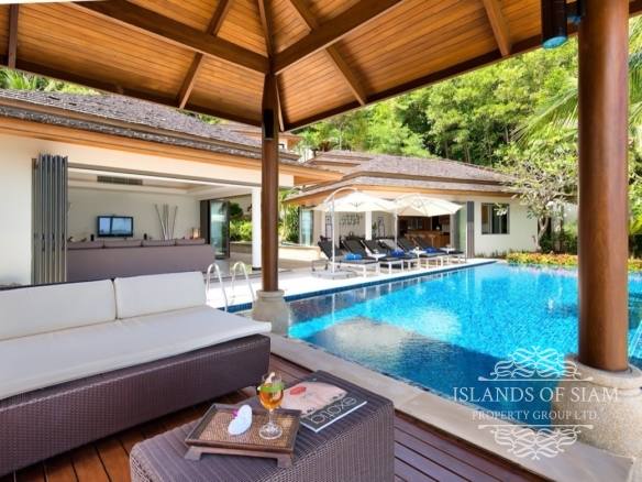 You’ll find well-planned interiors and layout combining luxury and practicality – with the focal points being the beachside pool and al fresco sala, whilst the spacious guest rooms are set back from the communal areas allowing for privacy and tranquility. Choose from a twin bed guest room which offers an en-suite bathroom, ideal for older children or another three bedrooms situated directly opposite in two large, stilted pavilions built into the cliffside, surrounded by tropical foliage. Connected by a terrace, each of these bedrooms slides open onto a balcony with views over the villa to the beach and sea beyond. The master features a four-posterbed, a walk-through dressing area to the generous bathroom with tub and shower, and a door that opens onto a small private garden.