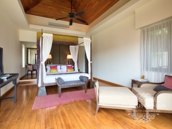As the most expansive and exclusive of the six Dhevatara Cove Estate villas located near Nathon, Baan Chang is a private beachfront residence that speaks of luxury, style and tranquility. Nestled in a peaceful cove surrounded by tropical gardens, ample grounds and an undisturbed stretch of sandy beach, the villa takes advantage of its tropical playground location by using its tall French windows to maximum effect.