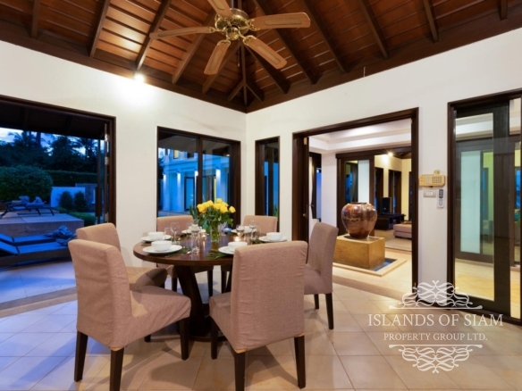 In the center of the villa a large swimming pool is surrounded by spacious sitting areas and comfortable sun loungers.