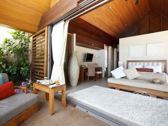 If there were ever a place to remain forever, it would be Baan Kilee. Located on Koh Samui’s unspoiled western coast, the 8-bedroom sanctuary sits on 1.5 acres and 30-metres of beach frontage on the white sands of Lipa Noi, one of Koh Samui’s few year-round swimming beaches. The villa takes open-plan design to a new level as it seamlessly blurs the lines between the indoor and outdoor world. Think lily ponds and orchid covered walkways, stone pillars, wood detailing, and doors and windows specifically designed to be folded back and out of the way to let the natural world in,and cedar roofs that subtly blend the pavilions of Baan Kilee in with its surroundings.