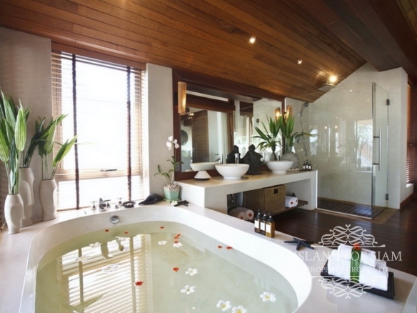 Baan Kilee’s surroundings are exquisite, as the villa features stunning panoramic vistas of Samui’s famous Five Islands and heavenly sunsets. Dedicated to family and wellness, Baan Kilee is an unparalleled retreat for the entire family, no matter how young or old. The property is wheelchair accessible and comes with a vast 22-metre infinity pool ideal for relaxing on its sunken pool loungers, playing water polo or simply enjoying some laps as the sun comes up. A second pool lies to the side and you can enjoy a drink at the swim up bar or even an outdoor movie as this sunken pool comes complete with a pull-down projector.
