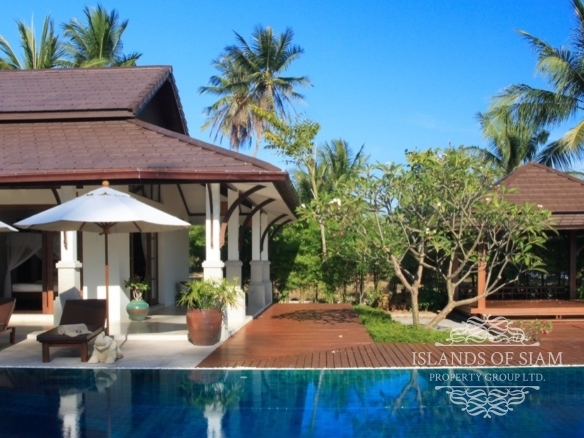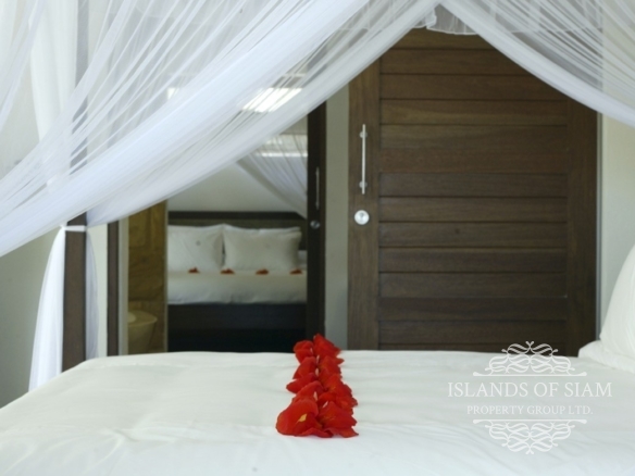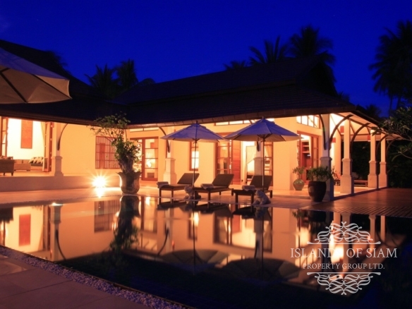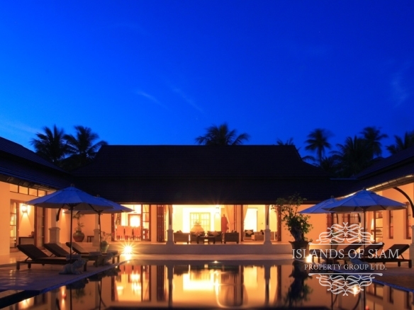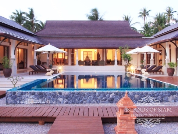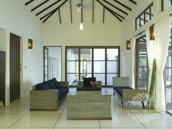 Located close to Hua Thanon village overlooking Koh Taen and Koh Matsum, lies Ban Laem Set – a 4-bedroom beachfront villa with plenty of charm. Designed with exuding a light and airy atmosphere throughout, this tropical Zen-inspired property consists of three pavilions arranged in a C-shape housing the main living areas and ensuite guest rooms surrounding a central infinity pool. The entrance greets you with its beautiful water hyacinth feature, leading up to an open-plan living space decked in clean and neutral furnishings, flanked by a dining room and an internal courtyard. You won’t miss the stunning ocean views either – every single aspect of the villa takes advantage of its beachfront location!