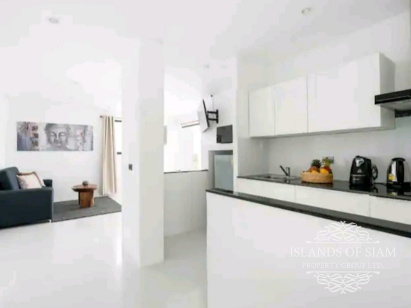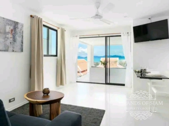 On the heights of Bophut, this charming apparently has 2 private bedrooms each with a bathroom. Kitchen, living room and outdoor sala with sea view.