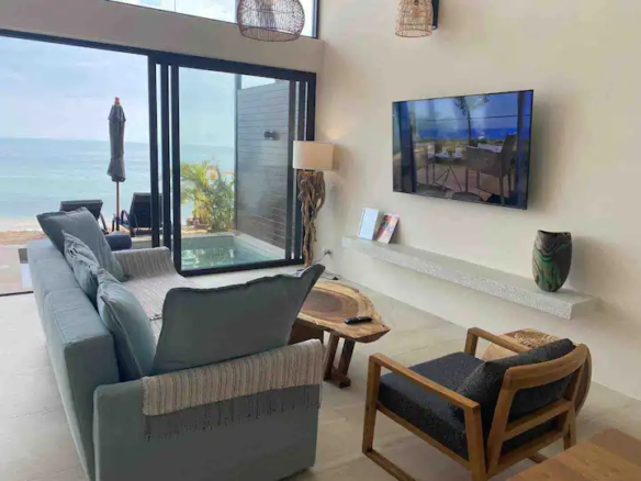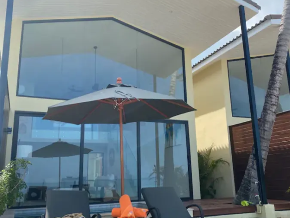 Road noise from passing by cars can be heard (if you are a light sleeper this place is not ideal for you) as well as ocean waves as the 3 villas are located directly on the beach.