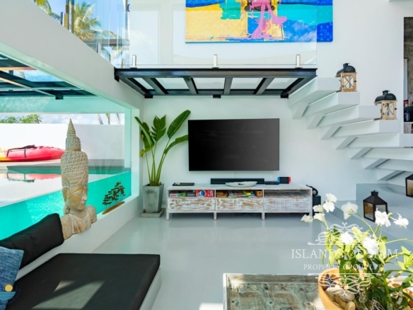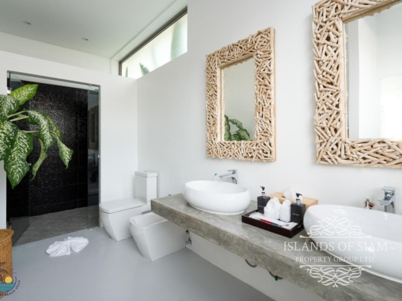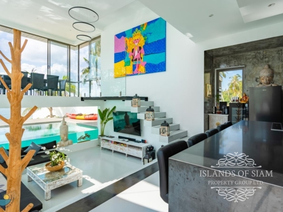 Located at the end of a peaceful cove opposite Koh Taen island in the south corner of Koh Samui, this new modern villa epitomizes samui’s waterfront private homes.