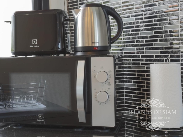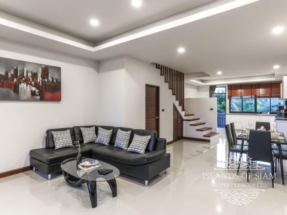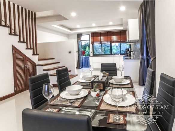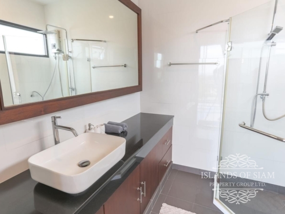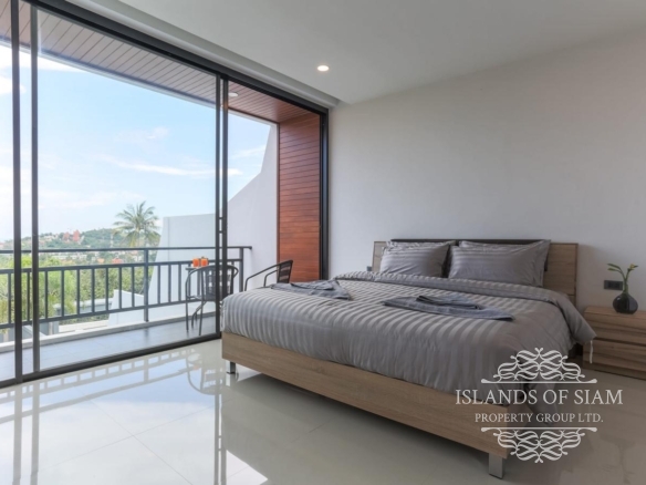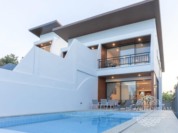 Brand new modern 3-bedroom sea view semi-detached villa with private pool which is located within walking distance of Choeng Mon beach and a short drive from Chaweng, Bangrak, Plai Laem, Fisherman’s Village and the Airport. Enjoy beautiful sunrise views looking out over Choeng Mon beach and Ko Fan Island and magical sunset views from the rear looking out over Plai Laem and Big Buddha. The villa features fully equipped kitchen, washing machine, three en-suite bedrooms and a guest bathroom. One bedroom is in the ground floor, and the other two bedrooms are located on the second floor.