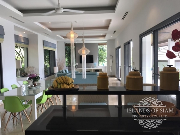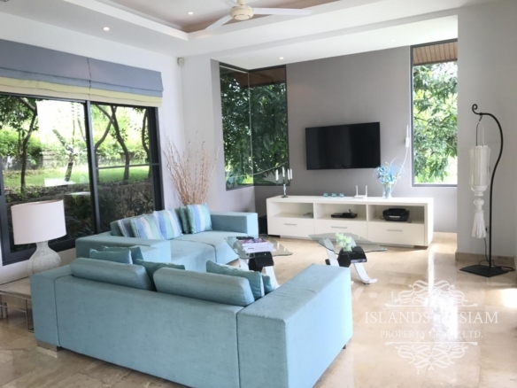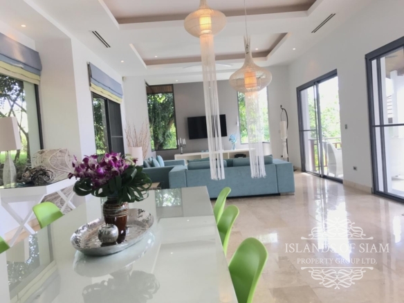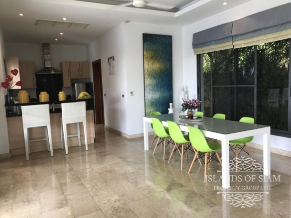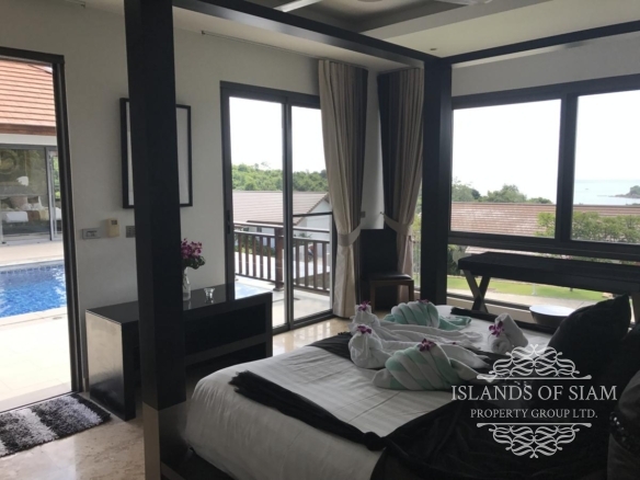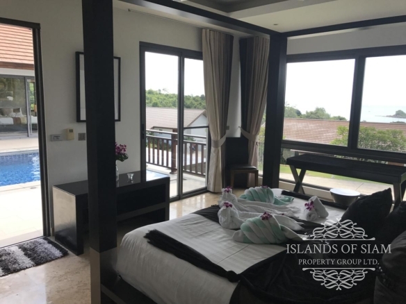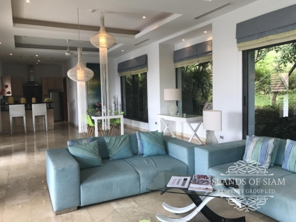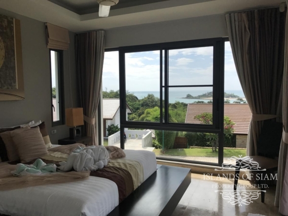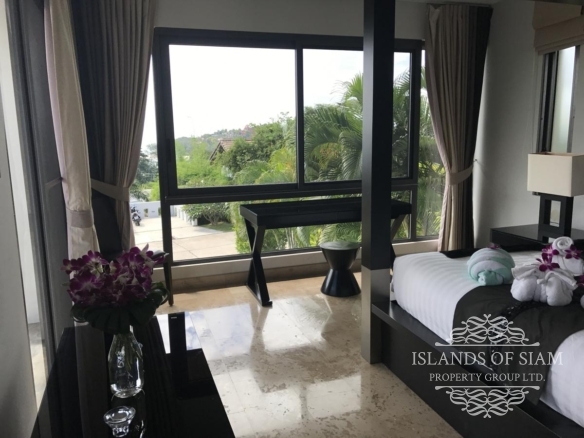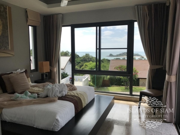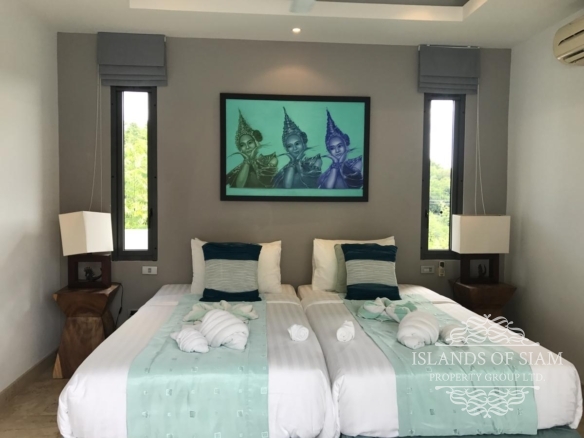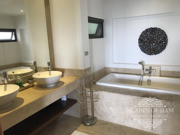 This luxurious 3 bedroom villa has expansive views overlooking the beautiful Choeng Mon Beach which is just a 700m away. The main building has an open plan fully equipped western kitchen, guest bathroom, dining area and living room where a large flat-screen TV with Satellite connection and a quality music system provide the entertainment. All rooms are air conditioned, and each of the bedrooms has its own ensuite bathrooms, 2 of them enjoying the wonderful sea views. The villa is decorated and furnished to a very high standard which perfectly complements the luxurious setting. All rooms lead to the terrace which surrounds the large pool with Jacuzzi. There is covered parking in the car port under of the villa.