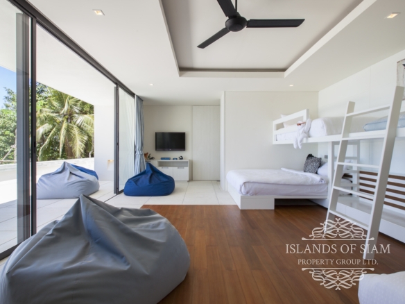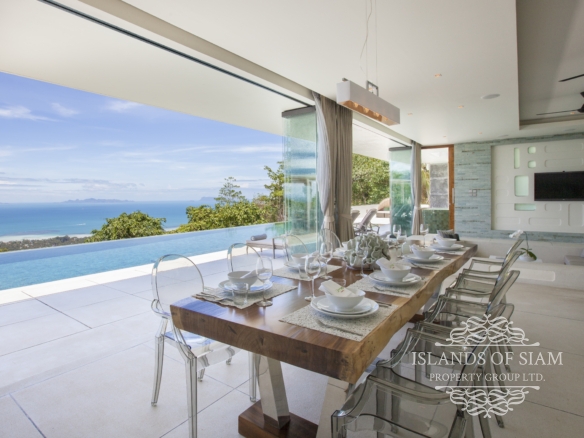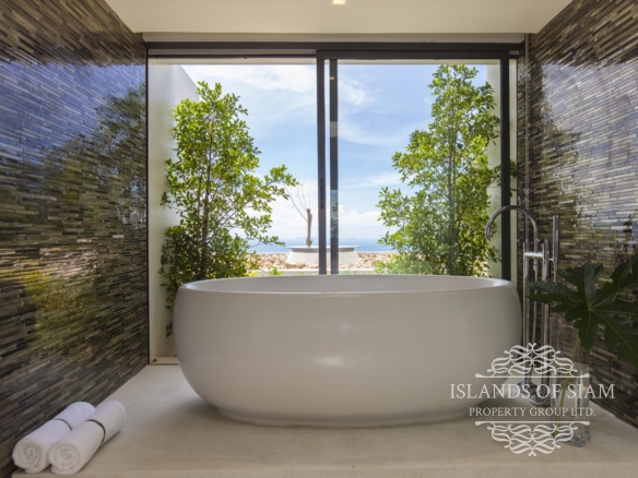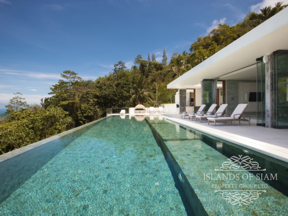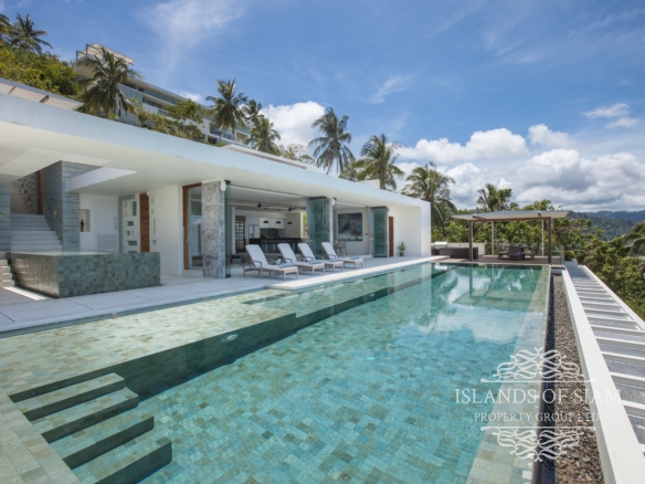 Nestled atop the verdant hills of the island’s north-west, known for its breathtaking sunsets, and just a short 45-minute drive from the international airport, this prestigious vacation retreat offers an unobstructed 180-degree panorama of the entire western coastline, including the captivating Ang Thong National Marine Park and the Five Islands group.