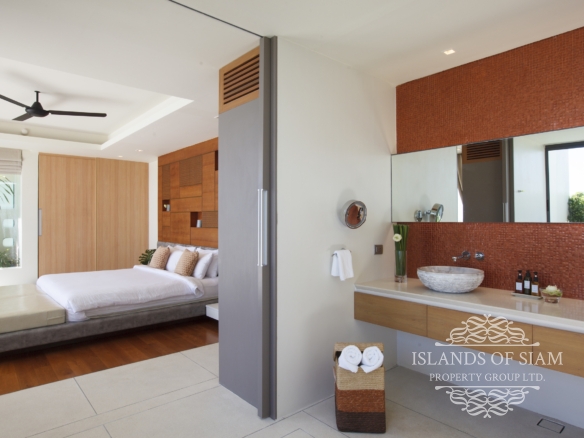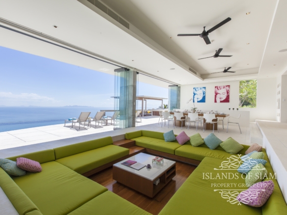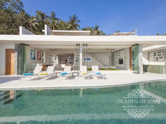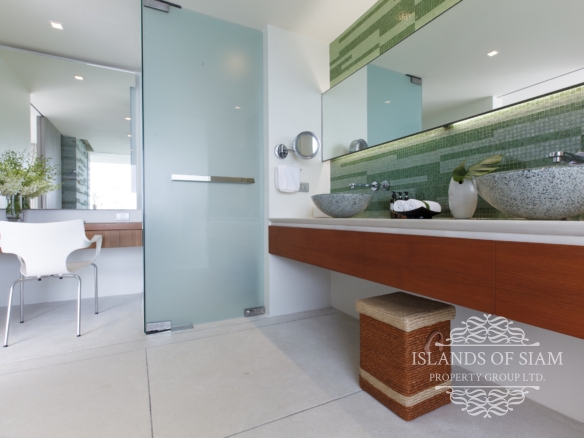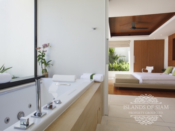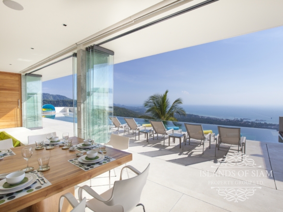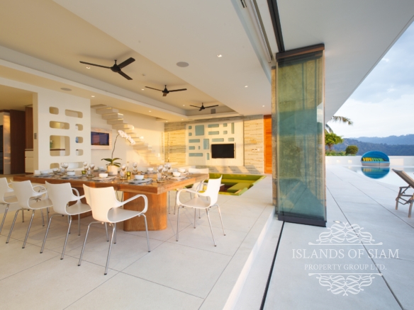 Nestled atop the scenic hills overlooking the charming port of Nathon on Koh Samui, this villa is an opulent retreat offering awe-inspiring panoramic vista of the tranquil azure seas and the surrounding islands, including the renowned Angthong Marine Park, the picturesque Five Islands, and the bustling comings and goings of fishing boats and ferries to the island. This luxurious haven is also a front-row seat to witness some of the island’s most breathtaking sunsets.
