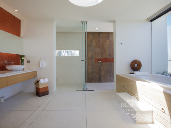 This villa accommodates up to 12 guests, and all the bedrooms are spacious, well-appointed, and strategically situated to capture the breathtaking coastal views. Each bedroom is equipped with a flat-screen TV, ample built-in wardrobes, personal safes, and en-suite bathrooms featuring walk-in rain showers. Two of the bedrooms even feature indulgent Jacuzzi baths with waterfall features and therapeutic lighting.