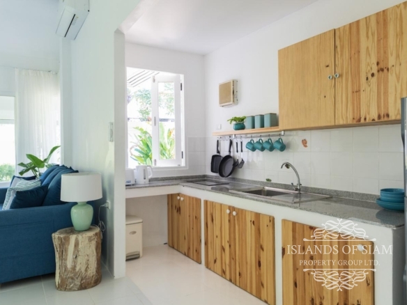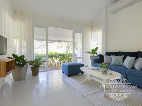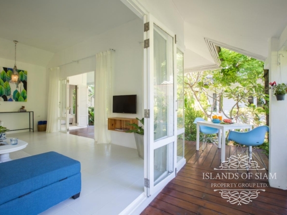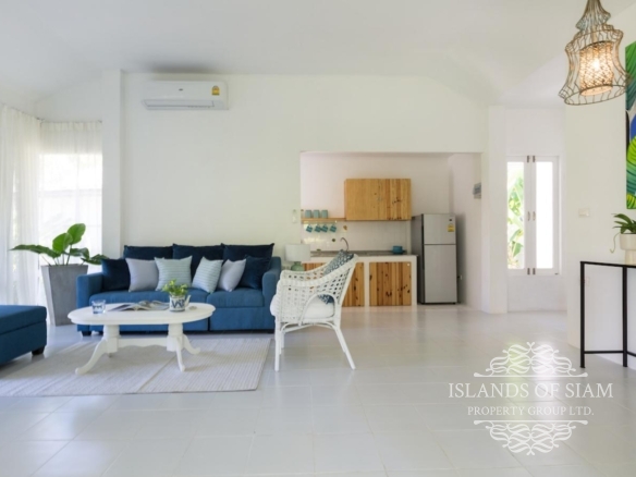 This charming 1-bedroom beach house is conveniently located in Plai Laem, surrounded by tropical landscaped gardens.