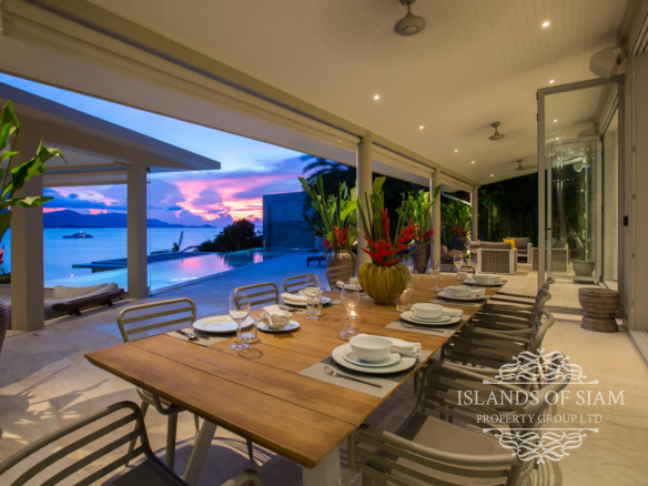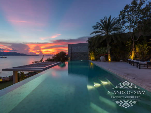 From the moment you step foot inside this villa you’ll know you are in for something special. Perched directly on the oceanfront with sweeping sunset views over the entire North Coast of Koh Samui, you will enjoy complete privacy in the island’s most prestigious neighborhood. This villa is a fully staffed, one-of-a-kind Private Villa Experience that is often booked months in advance. Why? Because this is only villa that offer ALL of the following: