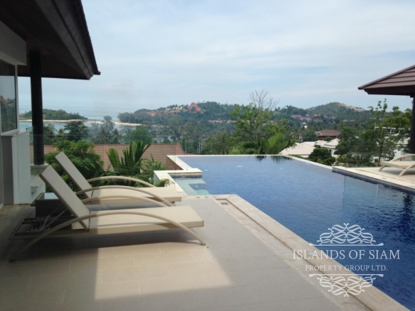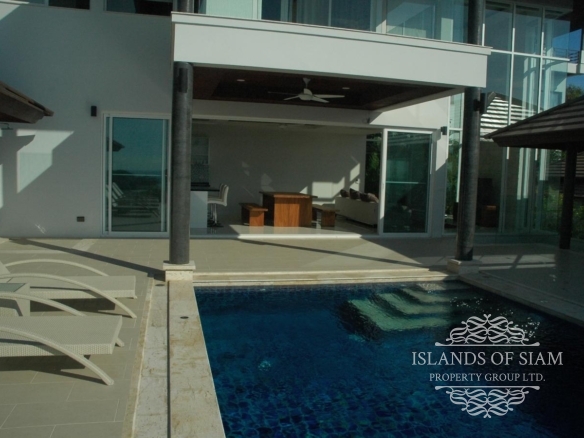 Villa Belle is a large modern design villa with amazing ocean views. Set over 3 levels, this villa gives a true feel of luxury. You will enter the villa is by its own private driveway with carport. The main living area boasts luxury, a wonderful fully equipped kitchen with breakfast bar faces the dining area with grand dining table and two long bench seats. After this comes the comfortable lounge area with high vaulted ceiling. Chill on the sofa watching a multitude of channels. Or if you prefer outdoor living step out onto the terrace where your own private pool awaits. Swim to the other end and gaze at the ocean view from the infinity edge. Above the lounge you will find the master bedroom suite, with its own large balcony overlooking the pool and the beautiful Cheongmon beach. At pool level you will find a further 2 guest bedrooms, and staircases down take you to a further 2 guest bedrooms, all with forward facing views, nobody should be disappointed. All rooms are air conditioned with ceiling fans allowing you to remain truly comfortable on your stay.