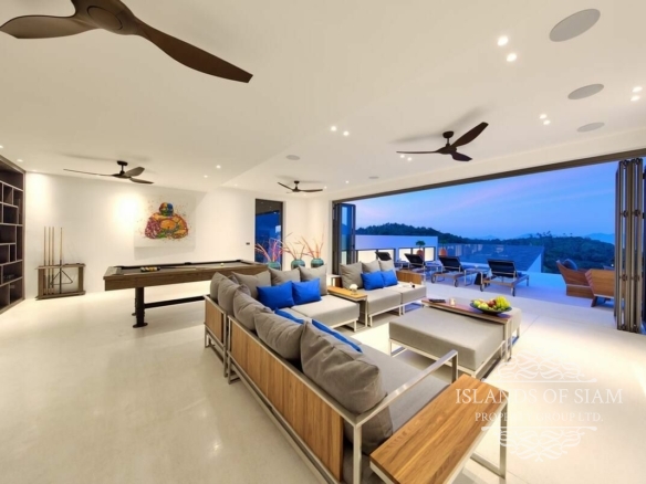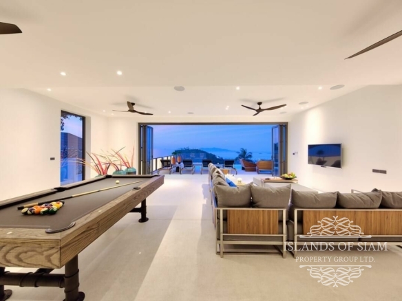 Set in the popular area of Bophut Hills, this large 6 bedroom villa offers the most luxurious and exclusive holiday destination available. Perfect for families, friends, and special events. With its breathtaking setting, elegant design and contemporary finish, this villa truly offers everything from total privacy, amazing entertaining spaces, fully equipped air-conditioned gym, pool table and large infinity swimming pool with incredible 180 degree views.