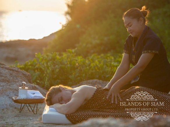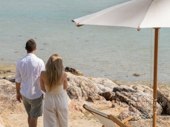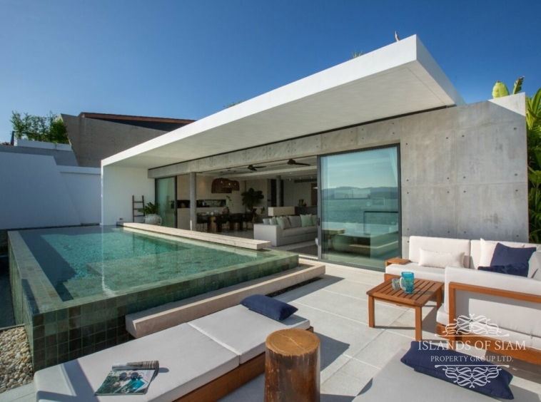 This Estate is a luxury four-villa complex in the exclusive Plai Laem neighborhood on a private beachfront on Thailand’s Koh Samui island. Designed to rise from the seashore like terraced vines in a hilly vineyard by renowned architect Gary Fell, it offers the tranquility of a private family getaway with five-star hotel services.