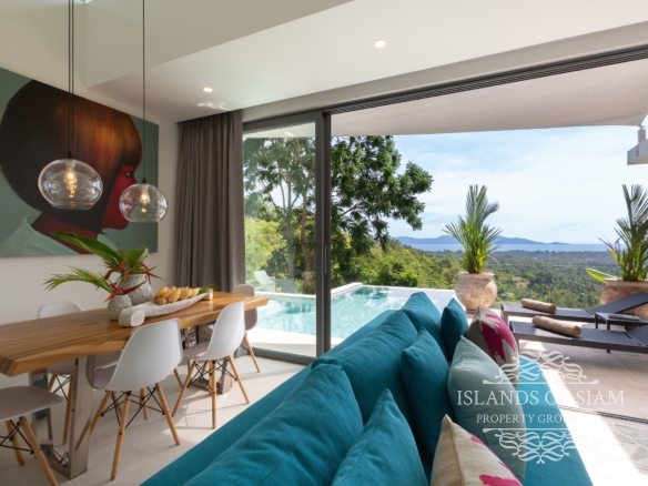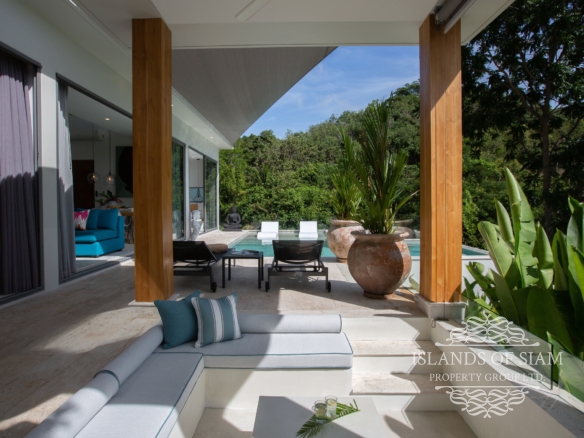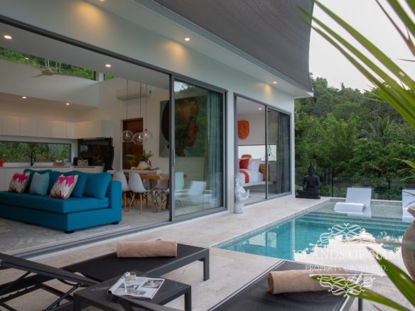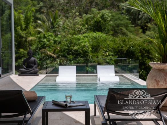 A secret secluded LUXURY PARADISE consisting of FIVE LUXURY HIGH STYLE CONTEMPORARY VILLAS set amongst lush tropical gardens beneath a mystical mountain waterfall above Maenam with panoramic views of the sea and KOH PHAGNAN ISLAND.