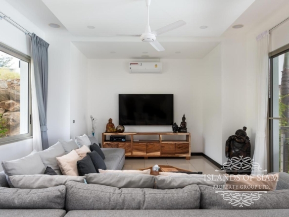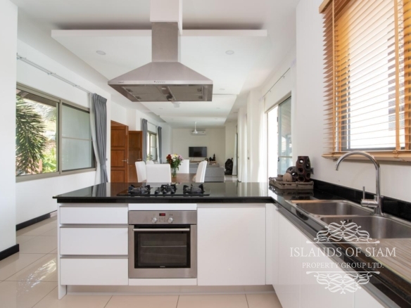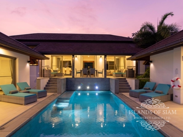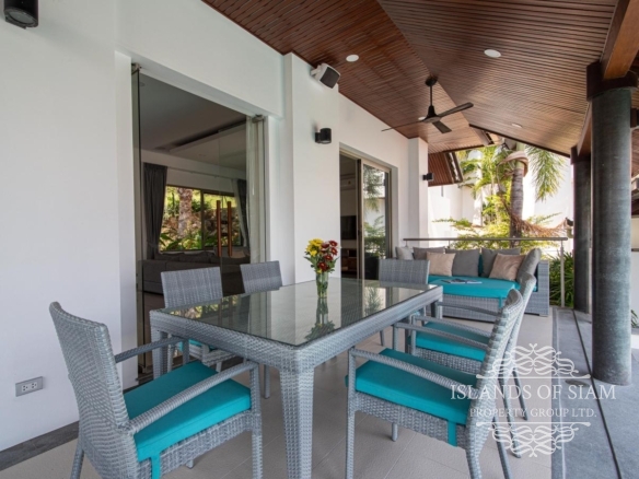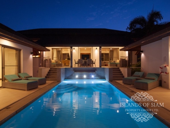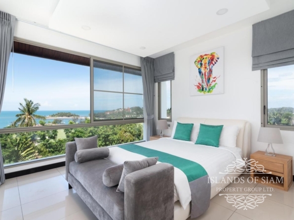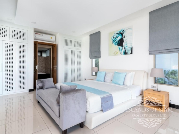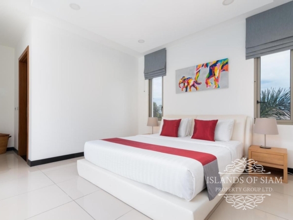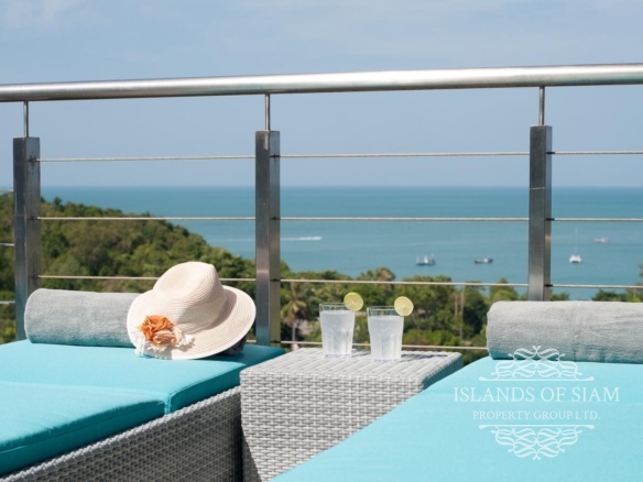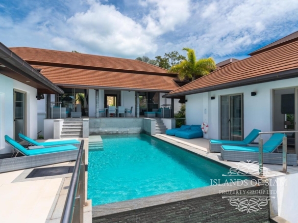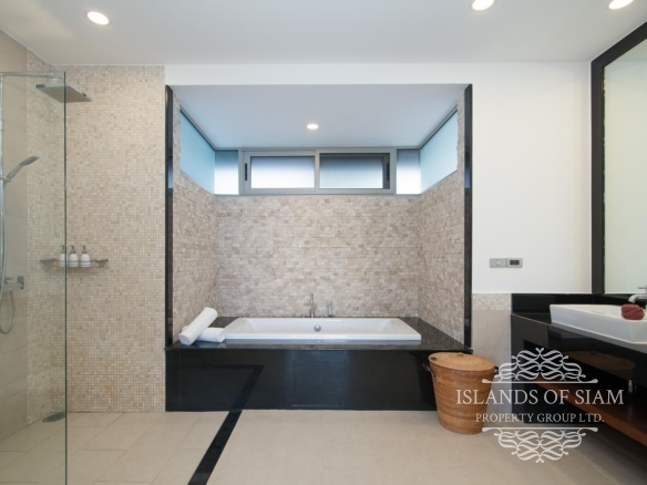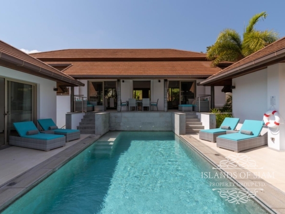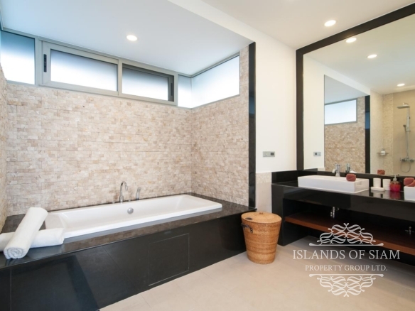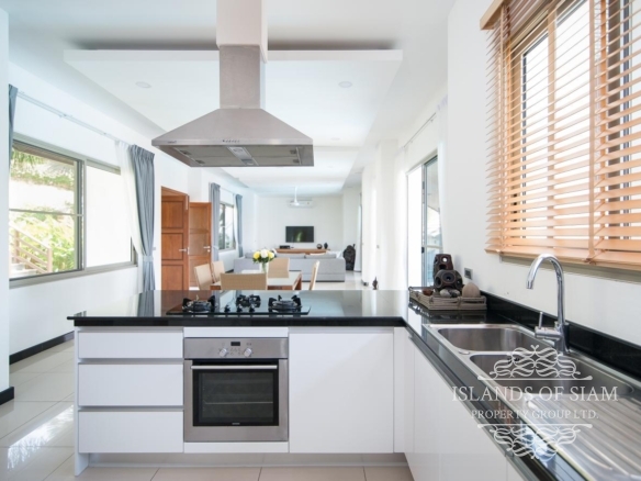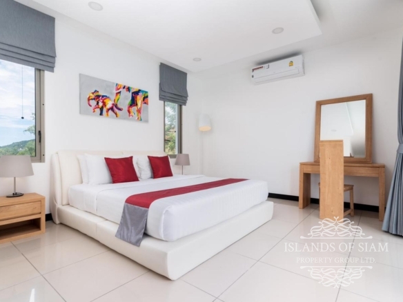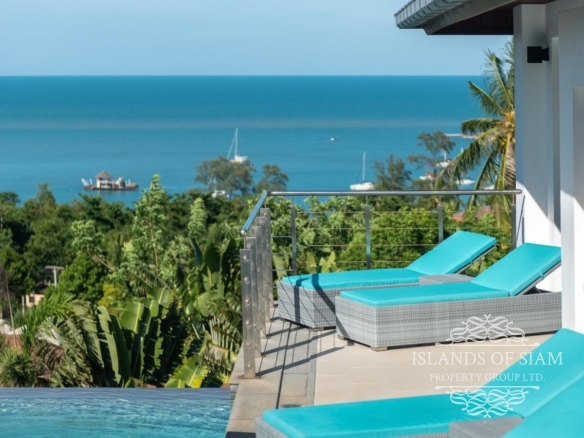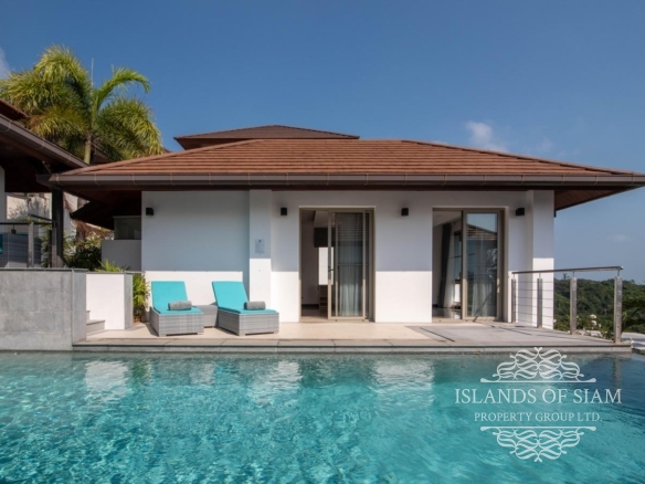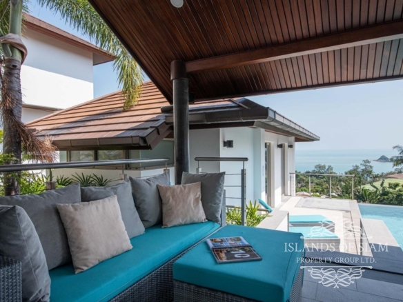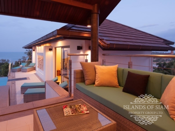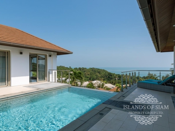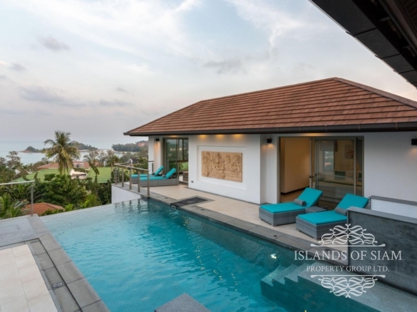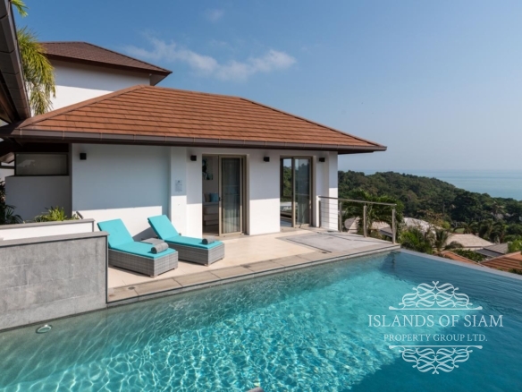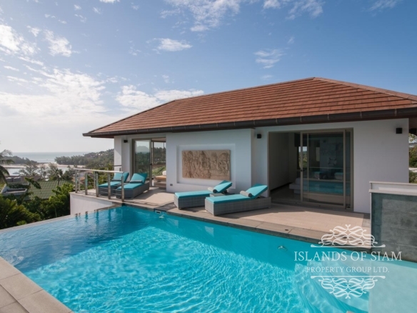 This elevated, luxurious 3 bedroom villa has expansive views overlooking the stunning beach of Choeng Mon which is only 650m away. The main building has an open plan fully equipped kitchen, guest bathroom, large dining area and comfortable living room. A large LED TV with Satellite connection provides entertainment, along with a Blue Ray player and quality music system. Outdoor speakers allow the entertainment to flow onto the pool area you can select from your IPOD, telephone or the radio. All bedrooms are sumptuously furnished, all air conditioned with ensuite bathrooms, the master and one other enjoy the glorious sea views. All rooms lead to the generously proportioned terrace which surrounds the large pool with Jacuzzi. This villa is decorated and furnished to a very high standard which perfectly complements the luxurious setting. There is covered parking in the car port to the side of the villa.