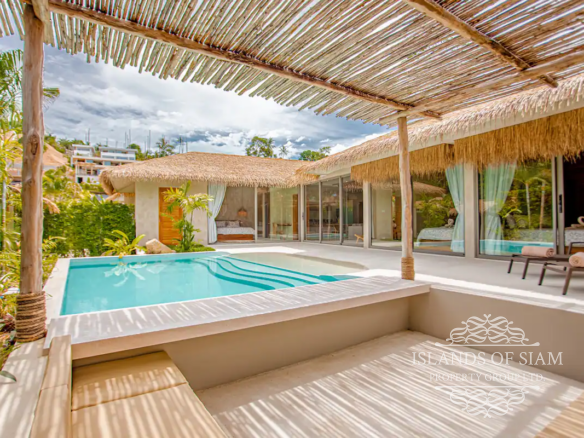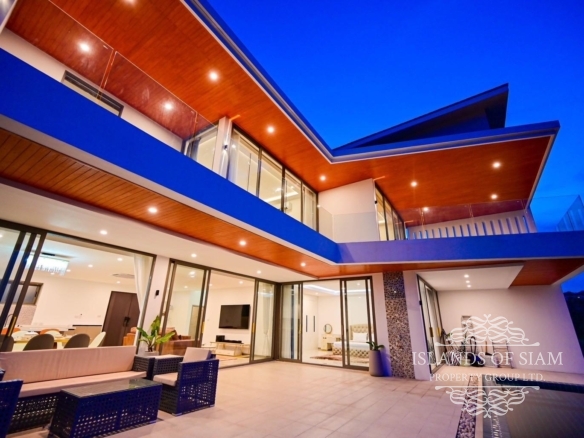 This brand new 6 bedroom villa is located high in the hills of Bo Phut, affording its guests a high quality and stylish standard of living along with stunning panoramic sea views.