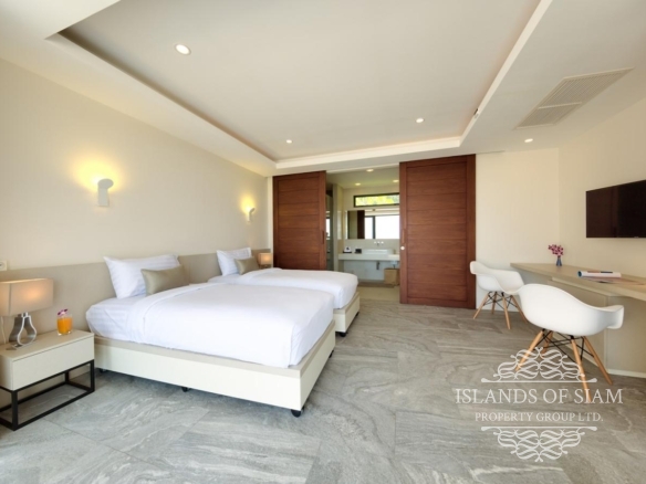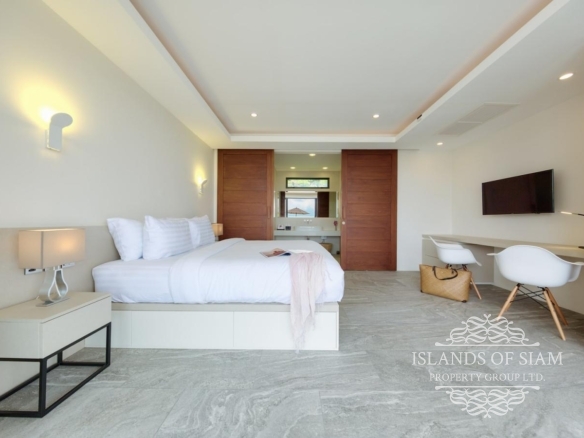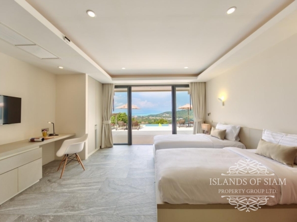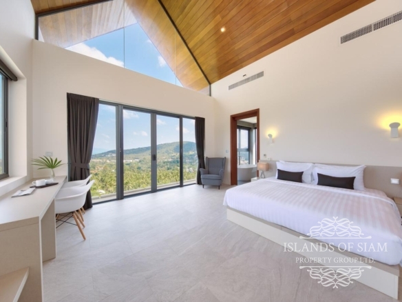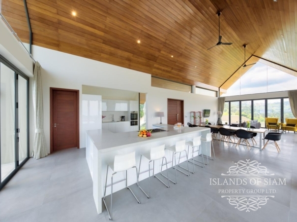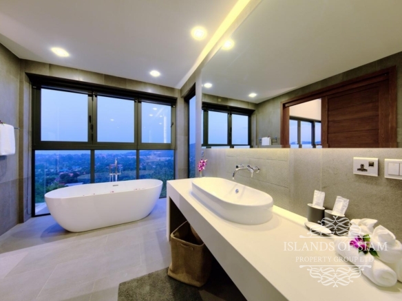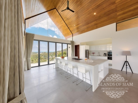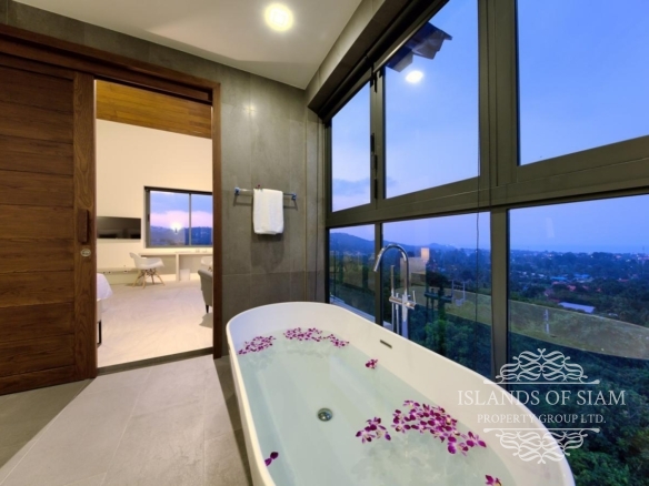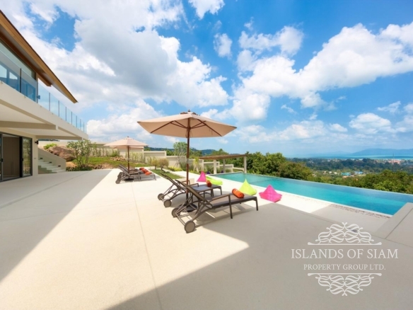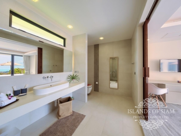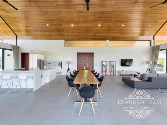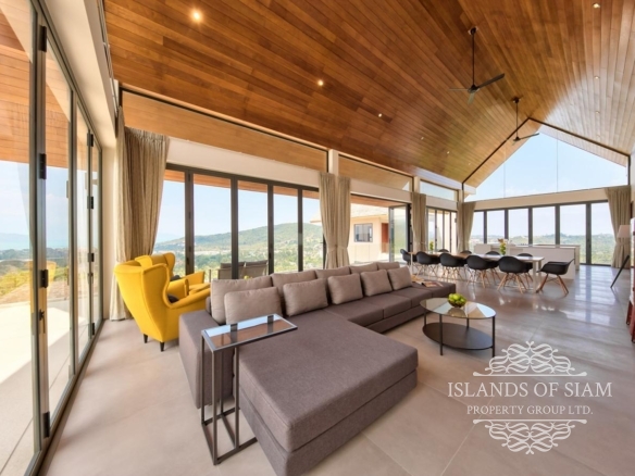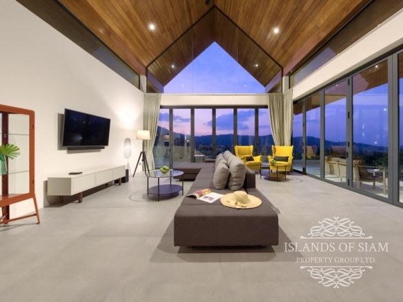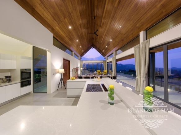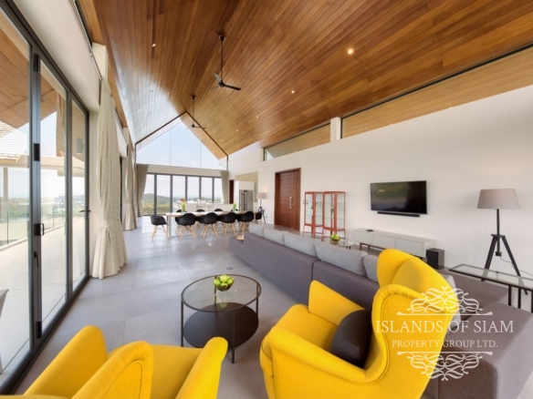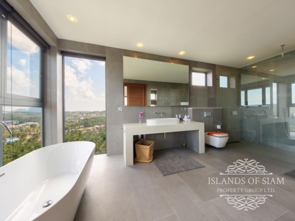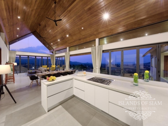This brand new 6 bedroom villa is located high in the hills of Bo Phut, affording its guests a high quality and stylish standard of living along with stunning panoramic sea views.