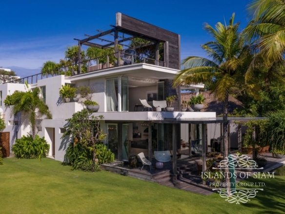 Imagine waking to the sound of rolling waves and taking a swim while your private chef prepares breakfast.  Spend an hour or two in the spa, which has its own plunge pool and is entered through an architectural colonnade with Zen-style ponds creating a rarefied ambiance.  Later, after an afternoon lazing around the pool, sip on curated cocktails and experience Bali’s famous sunset from a rooftop terrace.  Dinner may be a seafood barbecue in the poolside balé or a candlelit dinner on one of two beachfront decks.