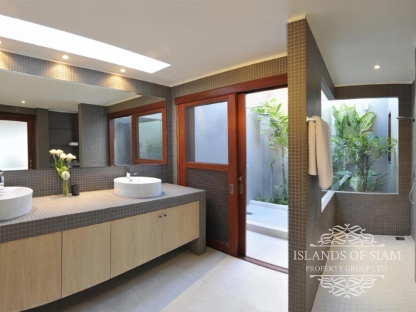Panorama Summit has five spacious bedrooms, each with floor to ceiling sliding glass doors, plenty of storage space, ceiling fans and air-conditioning; plus all have areas to sit and read, for some individual downtime. The two master bedrooms have en-suite bathrooms, tropical wooden floors, and private terraces with table and chairs; both have a south-facing terrace, whilst the first master bedroom also has a second north-facing terrace. There are two twin en-suite Guest Rooms, and a spacious fifth bedroom tucked into the far western section, leading straight out on to the pool.