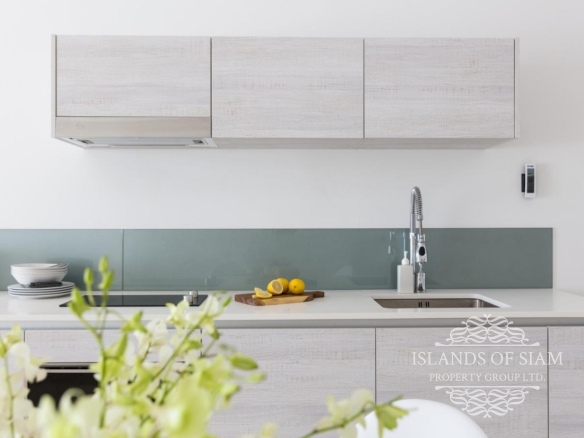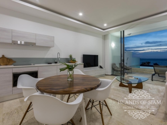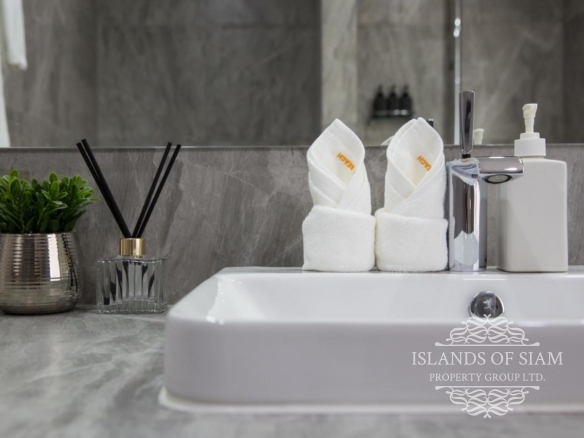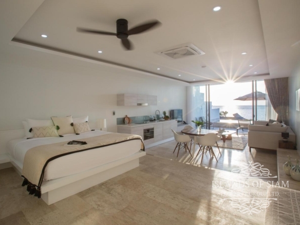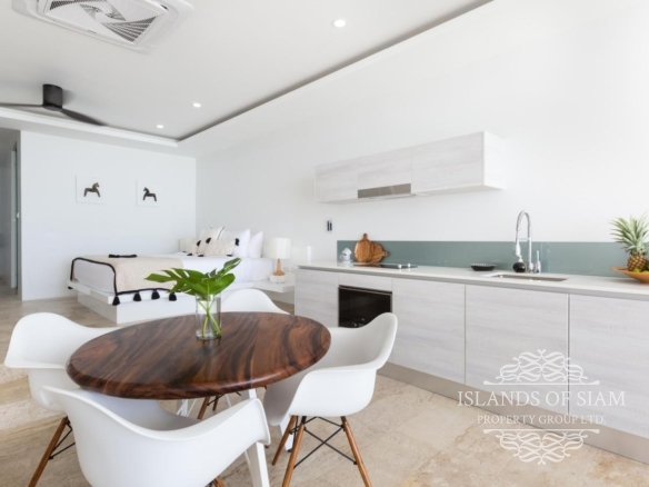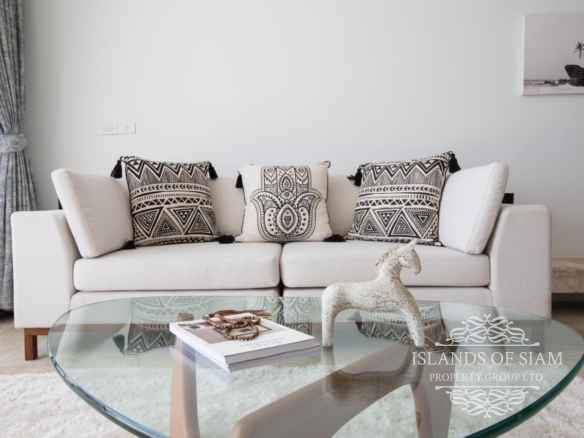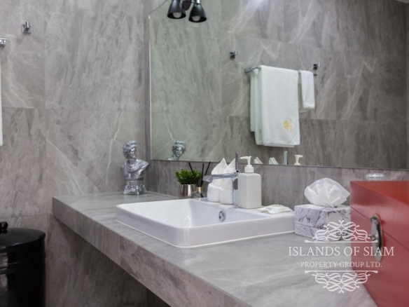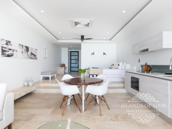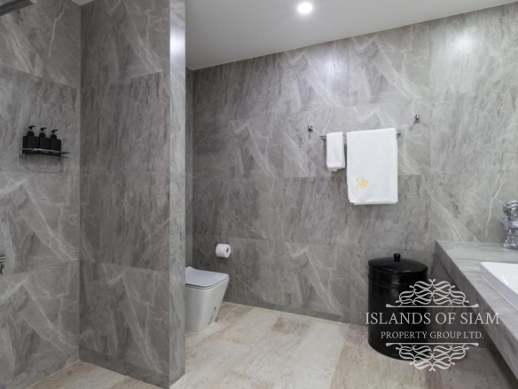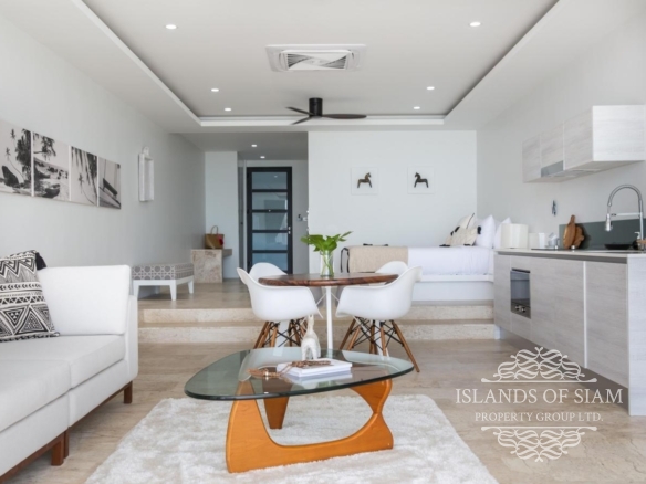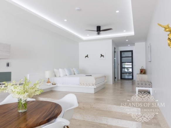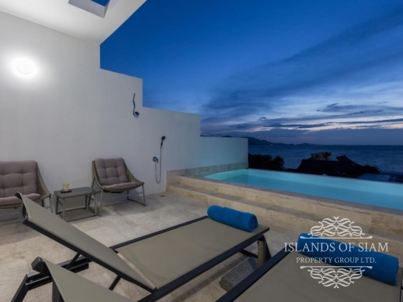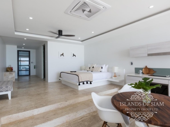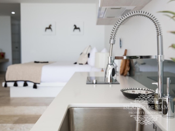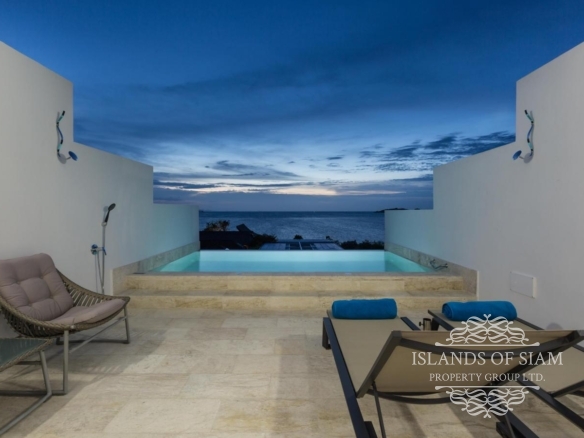 - Wall to ceiling glass doors open up to a private deck with sun loungers and sofa beds and a private 15 sqm pool with a spectacular 180 degree panoramic view from Big Buddha to the island of Koh Som and Koh Phangan in the distance.