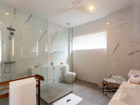 This brand new 4-bedroom villa in Maenam offers a stunning garden view and is ideal for families.