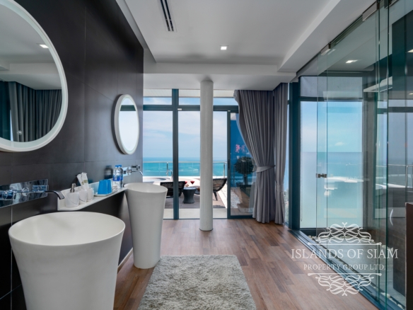 All four bedrooms are equipped with air-conditioning or climate-control systems, and each boasts 180-degree ocean views – perfect to catch the sunrise from bed. Two bedrooms lie on the upper floor, a third is on the middle living floor, and the fourth bedroom lie below, with its own private entrance, for those wanting solitude.