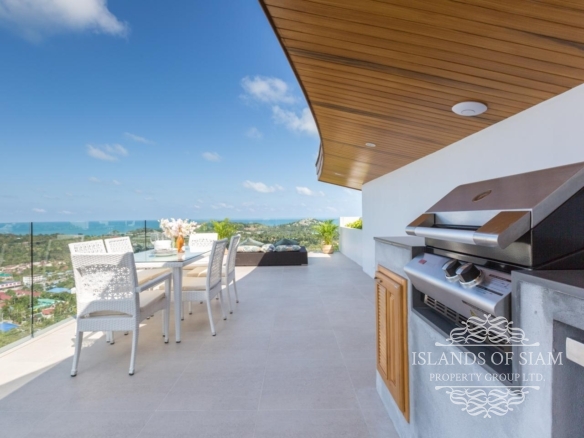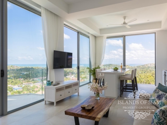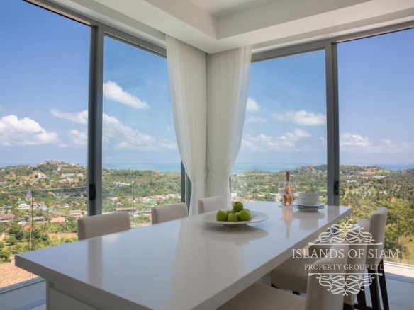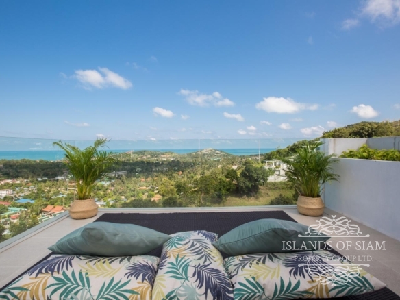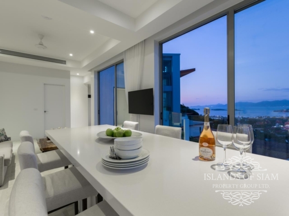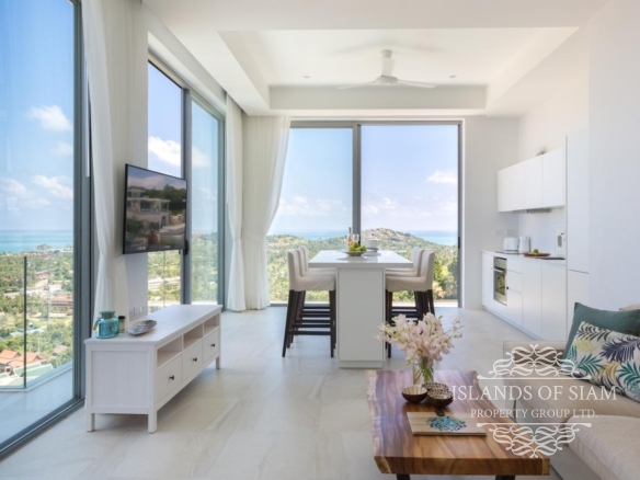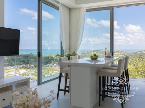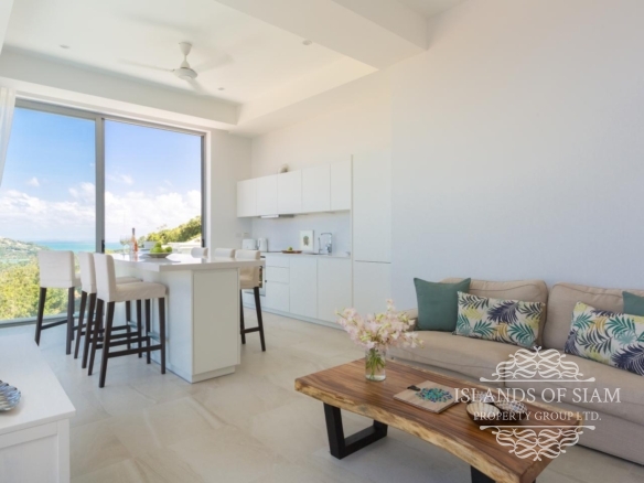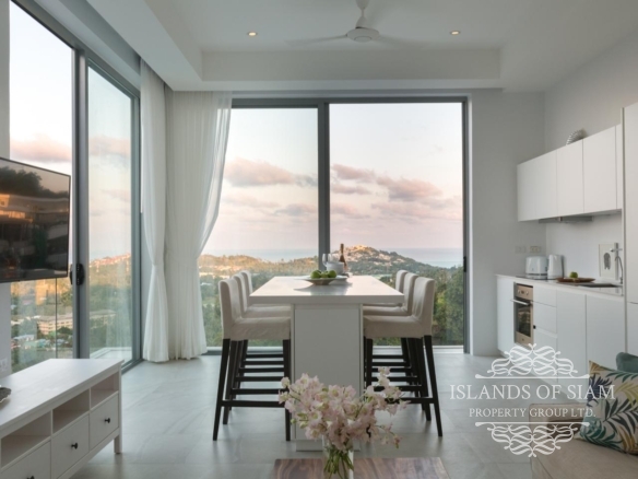 The apartments at the fabulous new Residence 8 are the perfect choice for discerning travellers looking for a contemporary, stylish vacation rental offering amazing 180-degree view of Samui’s North East coast, the Gulf of Thailand and neighbouring Koh Phangan. Ideal for two couples or small families, the apartments have been built to the highest European standard specification and each has unique individual features. The development’s great hilltop location is in the island’s most exclusive area, just five minutes’ drive from the soft white sand beach and azure sea of Choeng Mon.