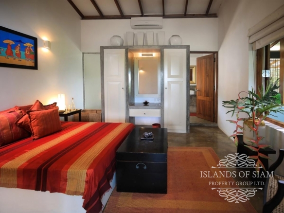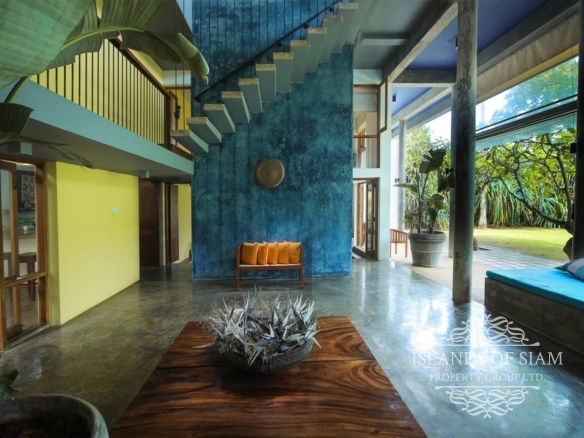 Saffron & Blue had its name inspired from the coral-coloured sands of Thambapanni Beach and clear azure skies. True to its name, this 4 bedroom elite haven in Kosgoda, Bentota is a mixture of hues and flavors – a reflection of its owner’s exquisite taste and wealthy experience. Ranil de Silva, an Ad man founding Leo Burnett, Sri Lanka’s largest advertising agency, has successfully expressed his likes, his inspirations, his description of the places he has seen and his multi-faceted creativity through the personal handpicking of every single piece of furniture in his plush holiday home. This complemented the villa design of Channa Daswatte, a leading renowned Sri Lankan architect whose work extends to the sub-continent. He is a protégé of the late Geoffrey Bawa, the world-famous architect himself.