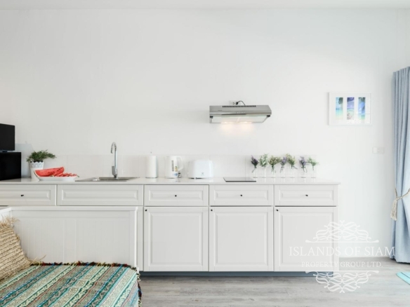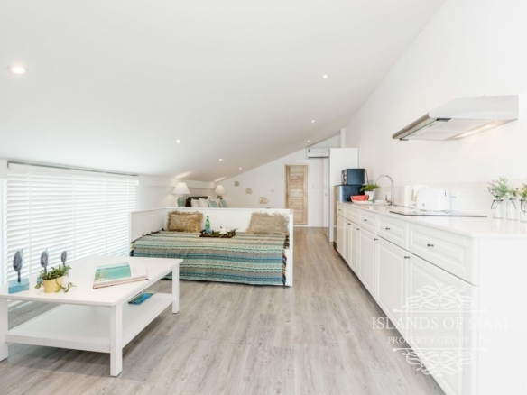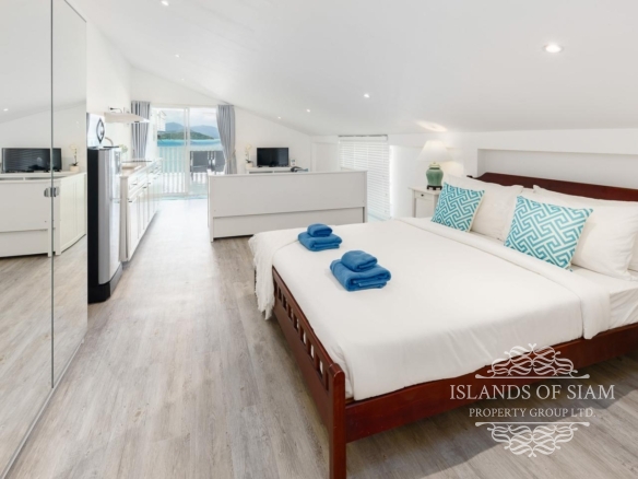 This cute beachside studio apartment is newly refurbished and in an excellent location right on the beach between Bangrak fresh market and the spectacular Big Buddha temple complex. Being west-facing, it enjoys fabulous views across the bay and jaw-dropping sunsets!