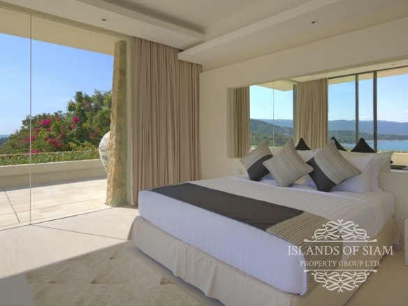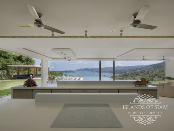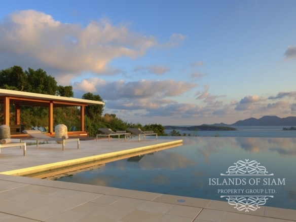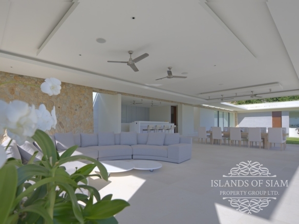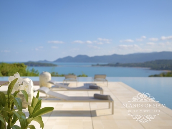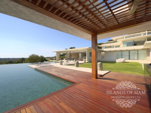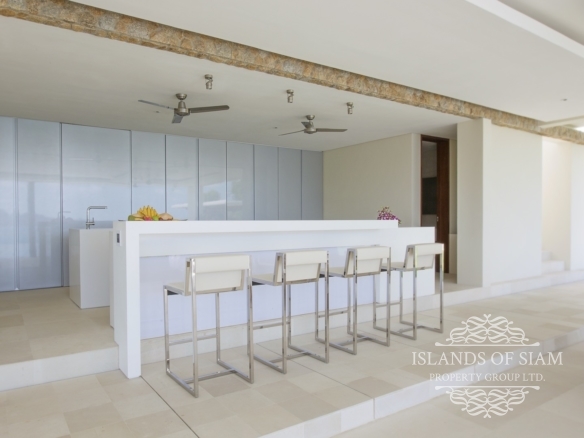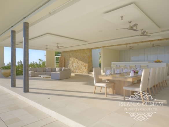 Villa 1 is extravagant in size yet unpretentious in design and atmosphere. The villa is situated high up on the estate and affords spectacular views. The lounge area is a scintillating setting for dinner and drinks with friends and is a perfect party venue. The L shaped refreshing infinity pool is long enough for laps and perfect for taking a dip and enjoying the surroundings. This villa is expansive and offers five double bedrooms and seven bathrooms. With three different lounge areas offering air conditioned comfort, a sala styled space ideal for barbeques with friends and also an open plan lounge area adjoining the dining area that fronts on to the pool and panoramas of Samui’s shoreline.