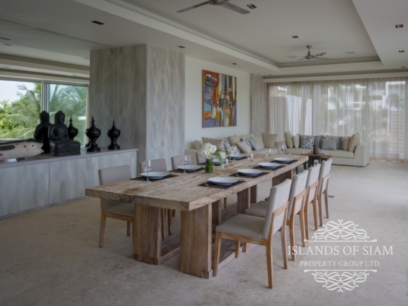 Samujana Villa 10 has recently undergone extensive renovations and features 6 very large private en-suite bedrooms as well as a plethora of social spaces. The villa is an entertainer’s dream with air-conditioned lounge and dining area opening up onto an expansive pool deck with spectacular views of our coral cove. A walled garden area is perfect for family picnics and the large infinity-edge pool is the star of the show. Centrally located on the estate, Villa 10 is a delightful walk down to the beach and overlooks the Samujana tennis court. The Master Bedroom, perched on top of the villa, commands the best views and features a walk-in closet, designer bathroom and private sun deck.
