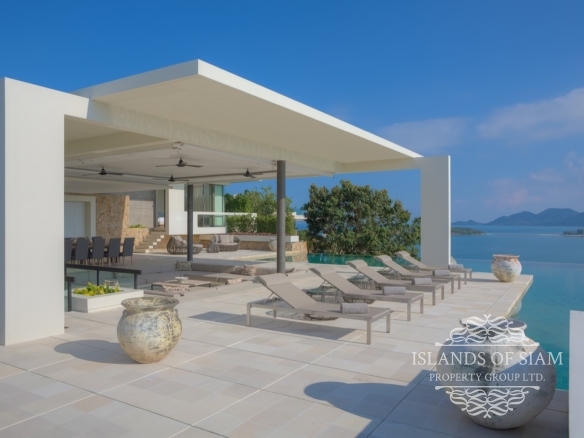 Villa 26 is perfectly placed to enjoy various views from the south and west, with scenes of the nearby islands as well as breathtaking sunsets. Offering five large bedrooms and eight bathrooms, the villa also houses a large garden, private gym, and in-villa cinema. A holiday dream, Villa 26 also has two modern fully equipped kitchens designed with entertainment in mind. The infinity edge pool is long enough to swim laps and the garden area is also great for family fun during your stay.