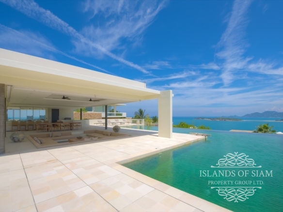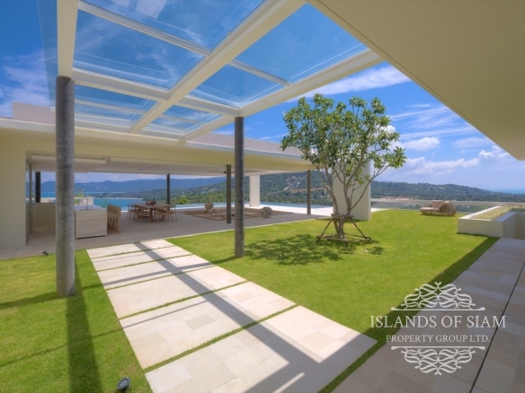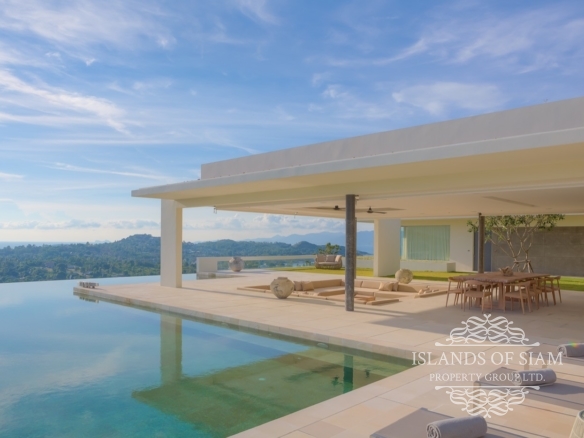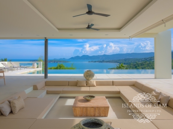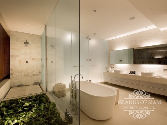 This villa is situated at one of the highest points in the Samujana resort. The beautiful villa enjoys panoramic southern and western views over the Gulf of Thailand. Villa 27 also boasts a unique and large interior garden. With four oversized bedrooms and five bathrooms, there is plenty of space to rent this villa for large groups. The villa also features a private gym, office space and a media room. The infinity edge pool is large enough for swimming, playing and cooling off in, whether you are hosting a large or small gathering – this villa is ideal for all occasions.